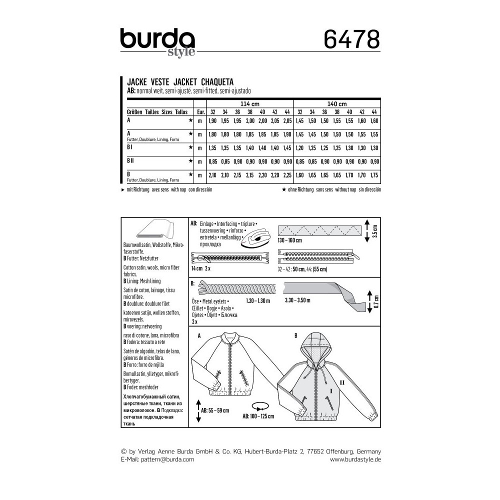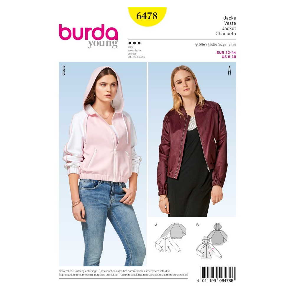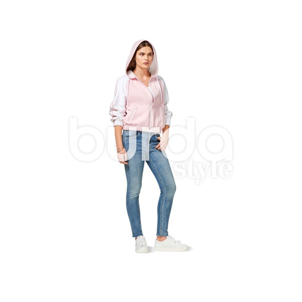 Střih Burda na bomber bundu a bundu s kapucí a zapínáním a kapsami na zip.