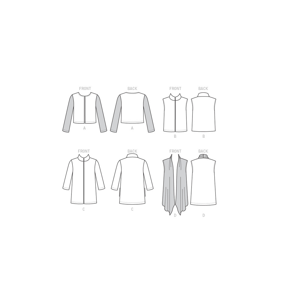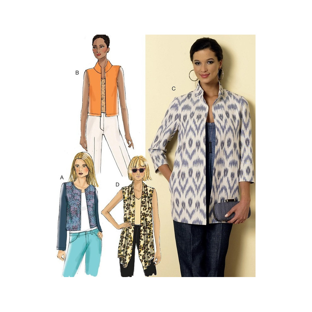 Střih Butterick na sako bez límce, sako a vestu se stojáčkem bez zapínání (4 varianty)