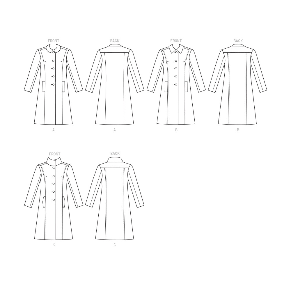 Střih Butterick na klasický kabát s variantami límců a princesovými švy