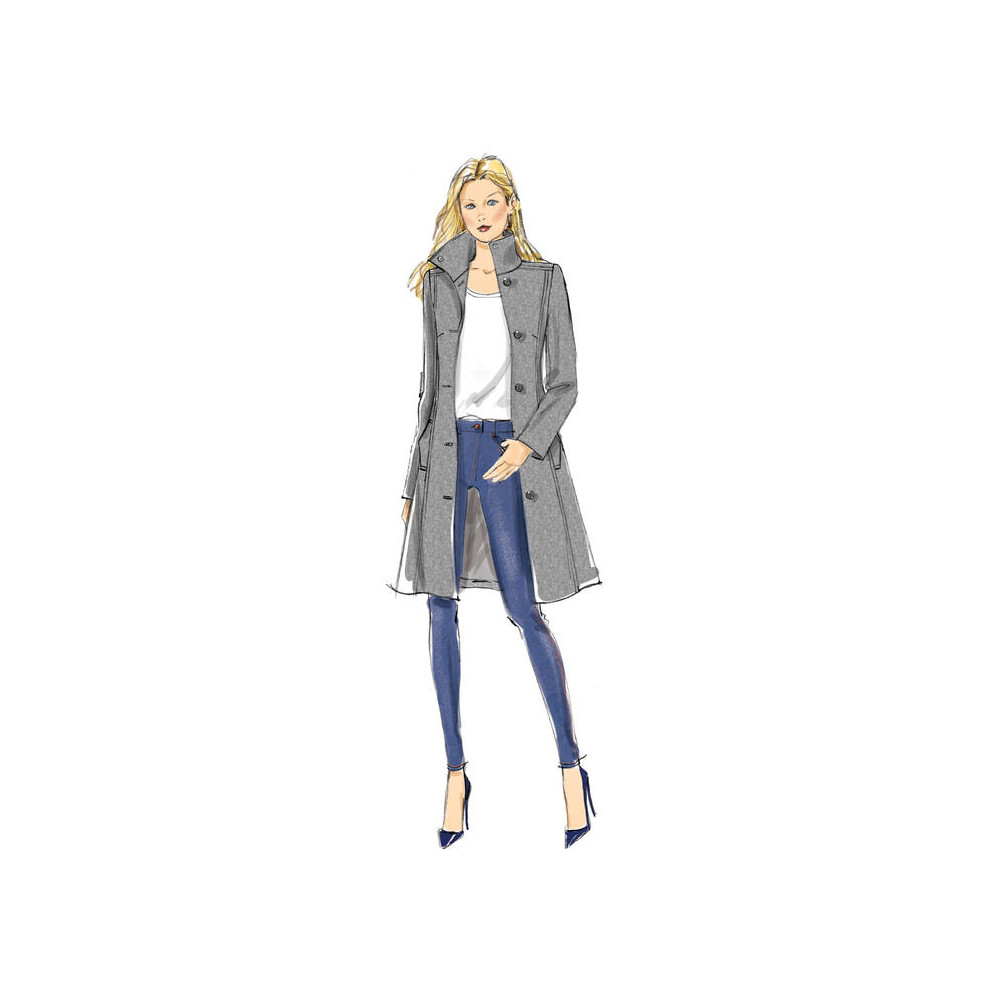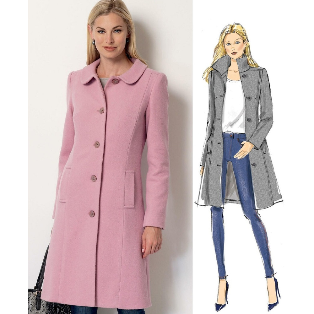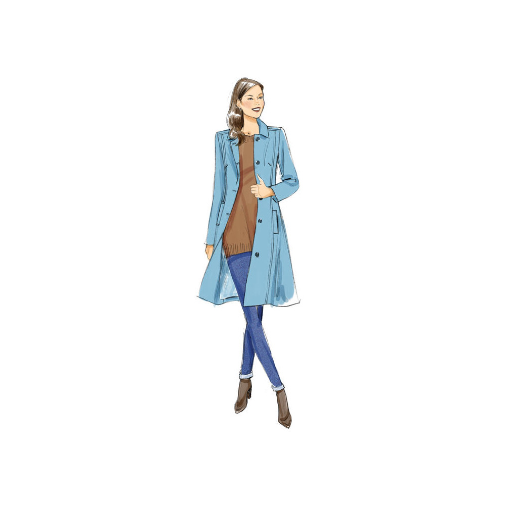 Střih Butterick na áčkový kabát s vysokým límcem a princess švy se skrytými kapsami