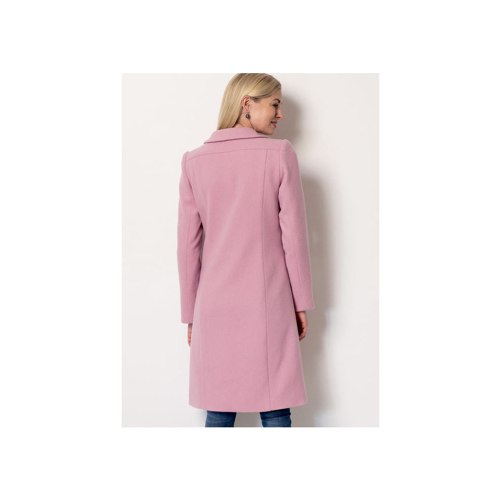 Střih Burda na jednoduchý rovný kabát ve dvou délkách s klopami a velkými kapsami.