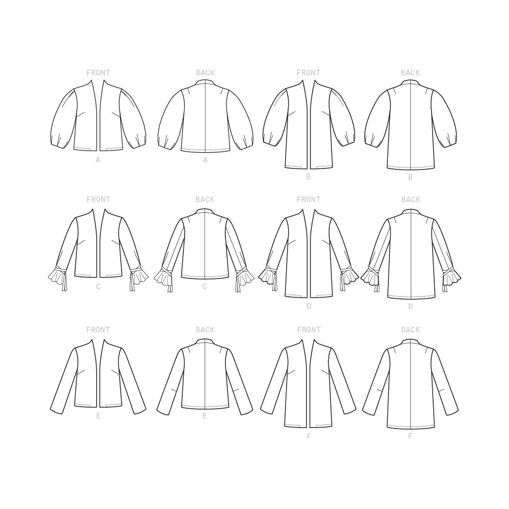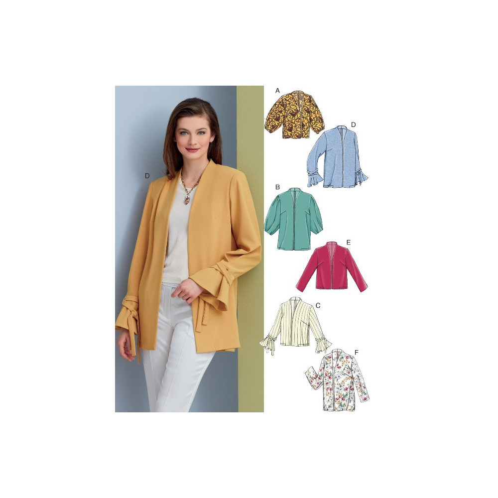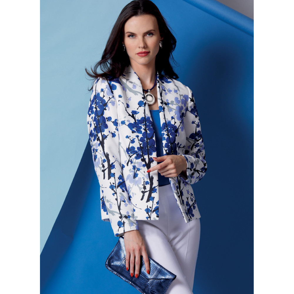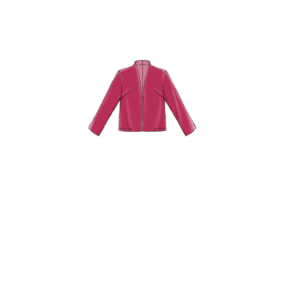 Střih Vogue na volné otevřené sako bez límce a bez podšívky v 6 variantách