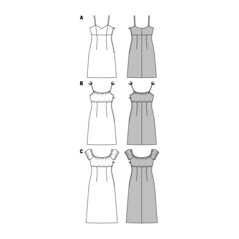 Střih Burda na pouzdrové šaty v jednoduché linii s různými detaily pro mnoho příležitostí.