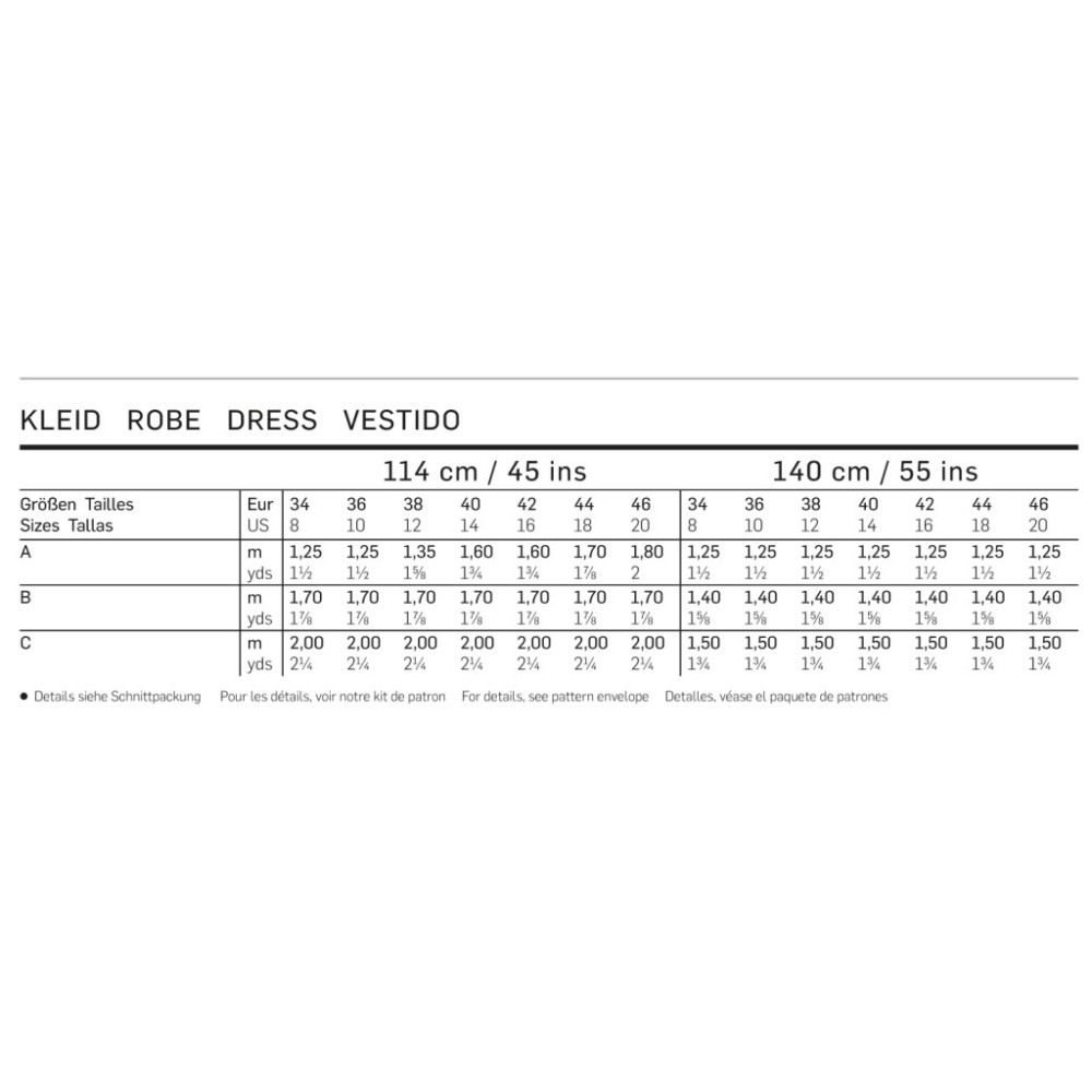 Více se dočtete v popisuStřih ve velikostech EUR 34-46, úroveň obtížnosti šití: 2 (lehká), doporučené látky: bavlna, viskóza, krepové látky