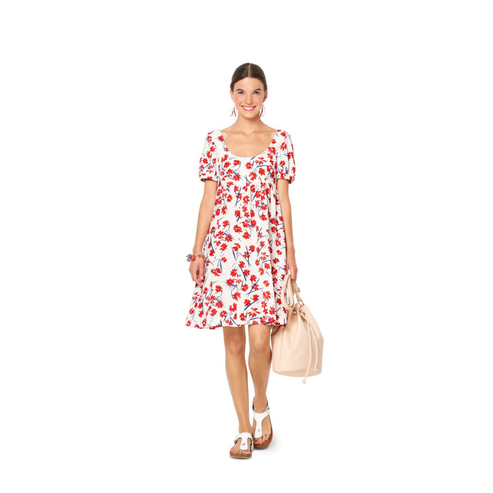Střih Vogue na volné empírové šaty s V-výstřihem a variantami rukávů