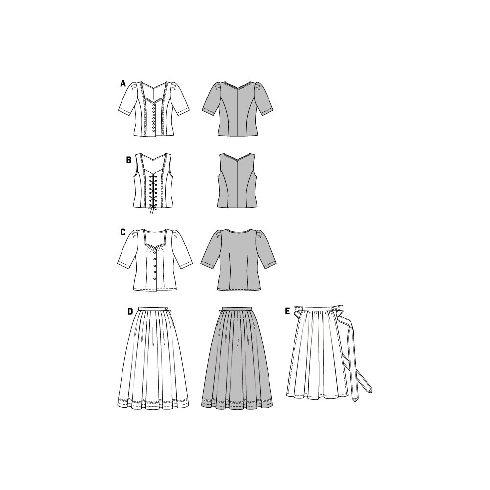 Střih Burda na krojovou nabíranou sukni, krojovou zástěrku a krojovou halenku