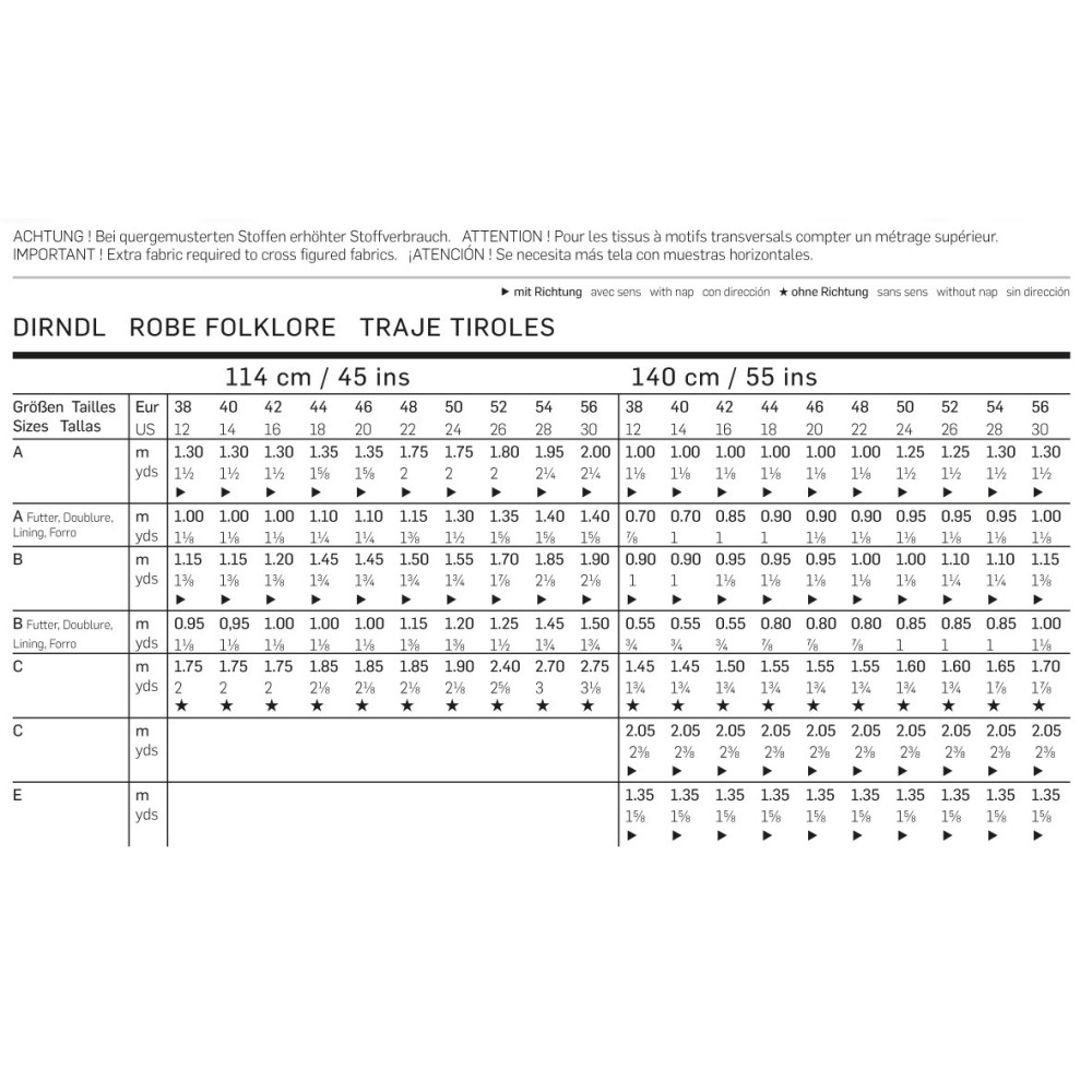 Více se dočtete v popisuStřih ve velikostech EUR 38-56, úroveň obtížnosti šití: 3 (střední), doporučené látky: bavlna, hedvábný taft, len