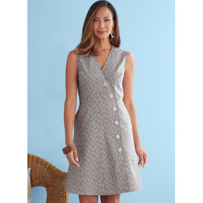 Střih Butterick na šaty se zavinovacím efektem, knoflíky a variantami rukávů