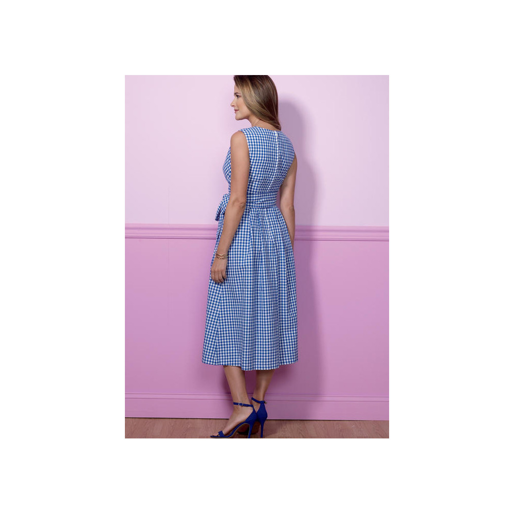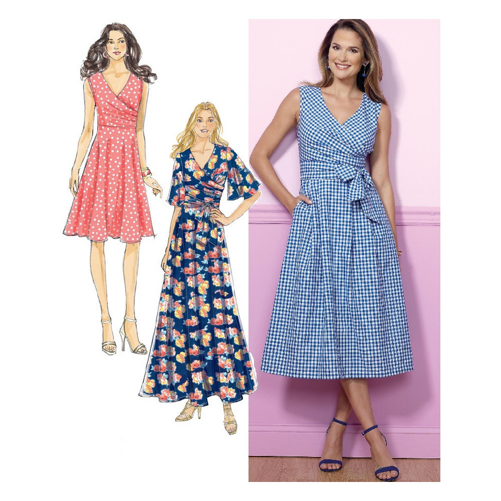 Střih Butterick na letní šaty se zavinovacím efektem, vysokým pasem a širokou sukní