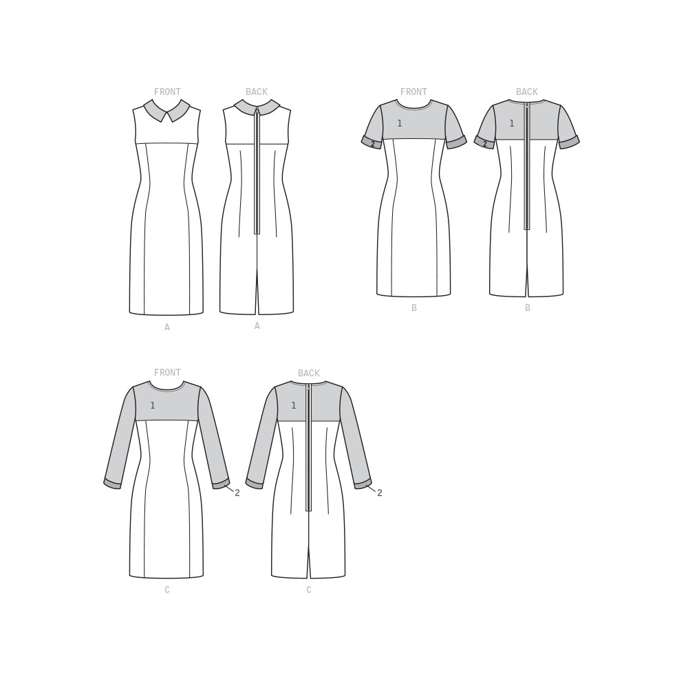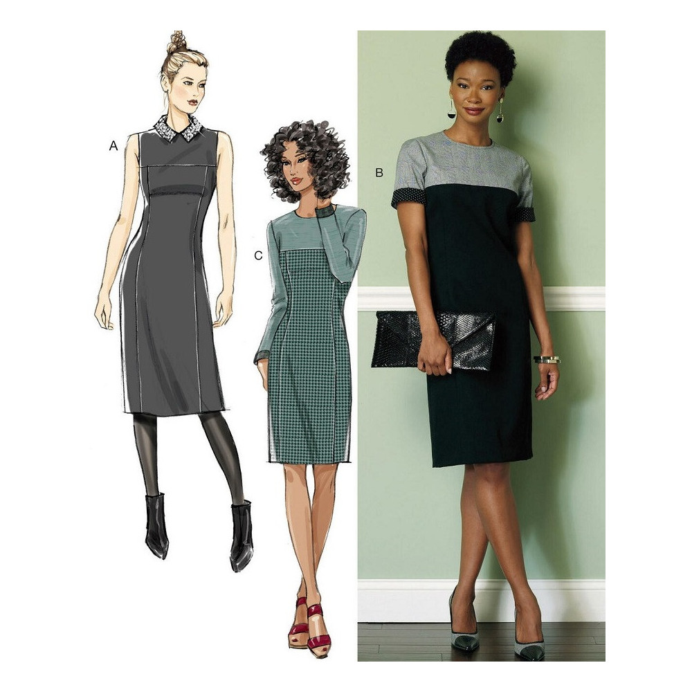 Střih Butterick na úzké šaty s límečkem, (kontrastními) sedly a variantami rukávů