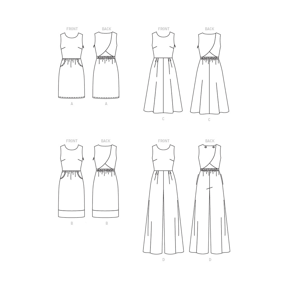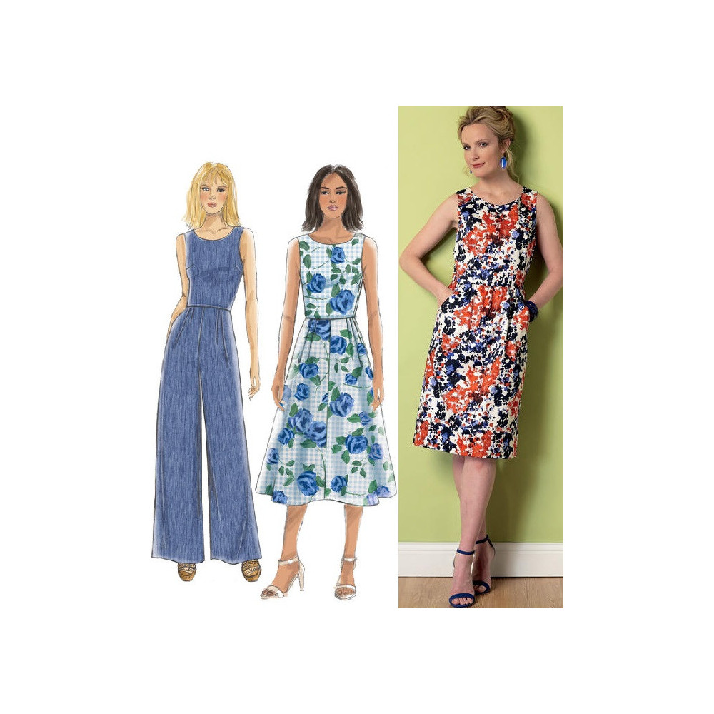 Střih Butterick na šaty a overal bez rukávů s kapsami a průstřihem na zádech