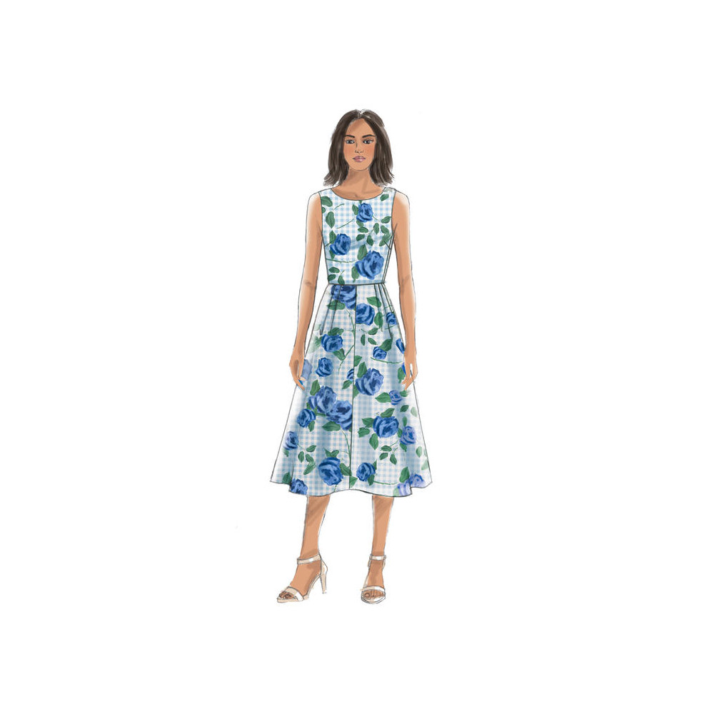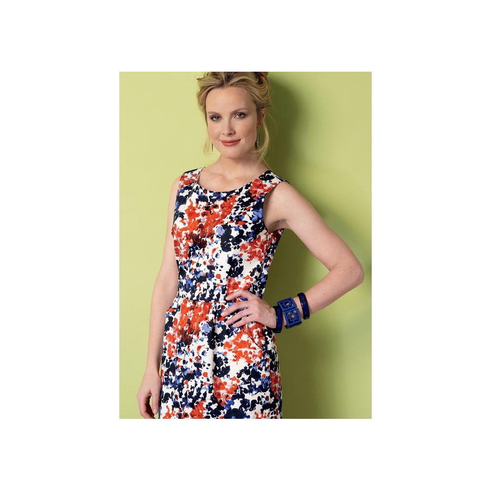 Střih Butterick na šaty bez rukávů s knoflíčky a áčkovou nebo pouzdrovou sukní