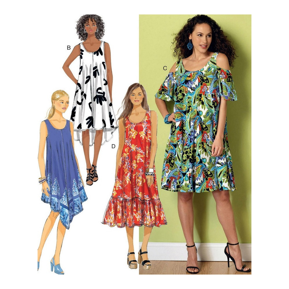 Střih Butterick na volné letní šaty na ramínka a s kapsami (4 varianty)