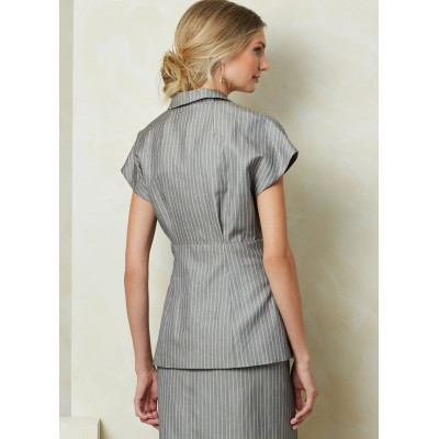 Střih Vogue na komplet topu s efektem vesty s klopovým asymetrickým límcem, patkami a skrytým...