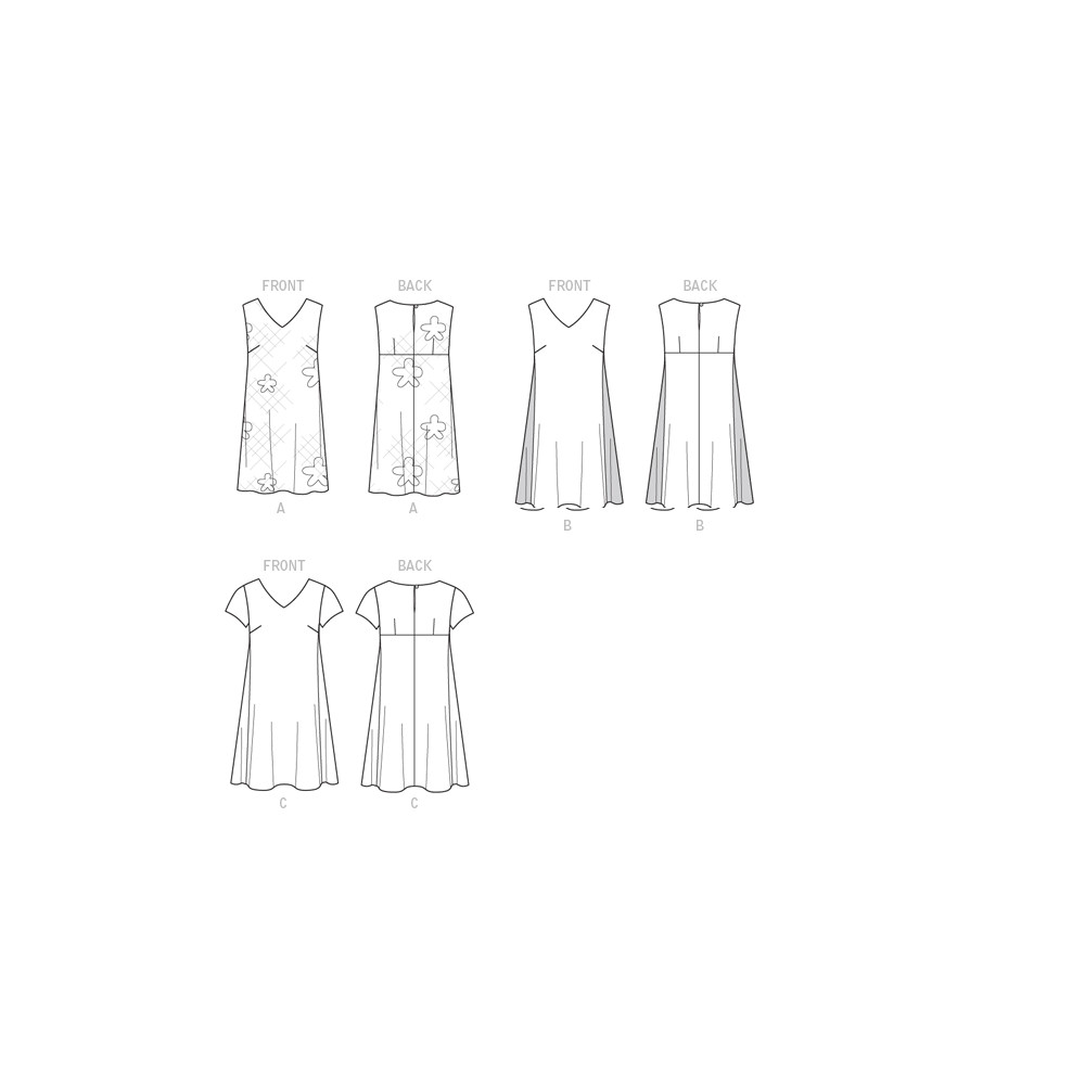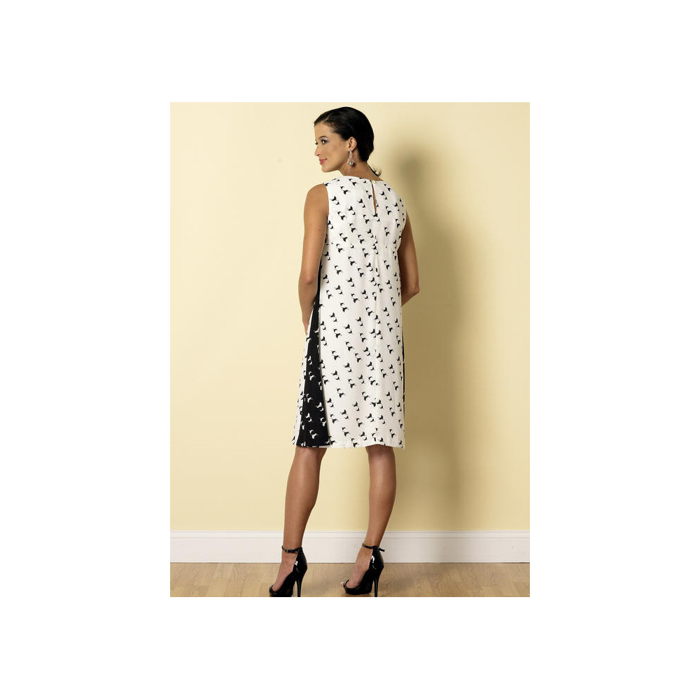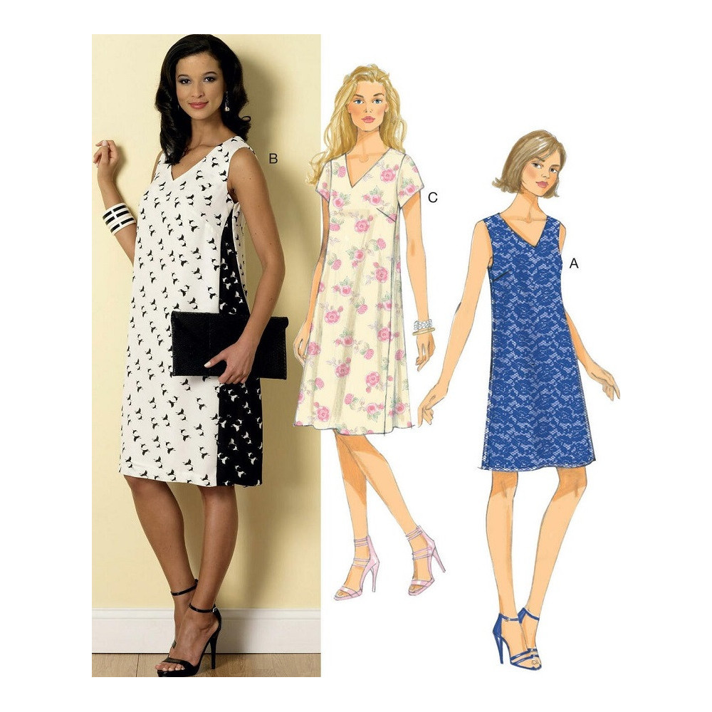Střih Butterick na volné tričkové šaty s V-výstřihem a bočními (kontrastními) vsadkami