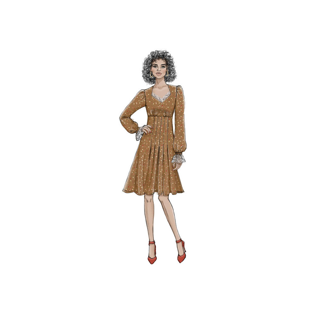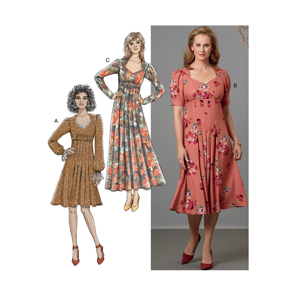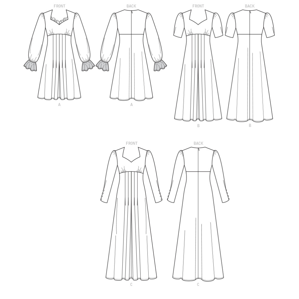 Střih Butterick na empírové šaty v různých délkách se sklady a variantami rukávů