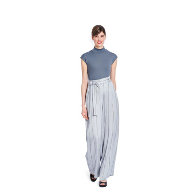 Střih Burda na kalhoty se širokými splývavými nohavicemi se sklady ve variantě s našitým páskem