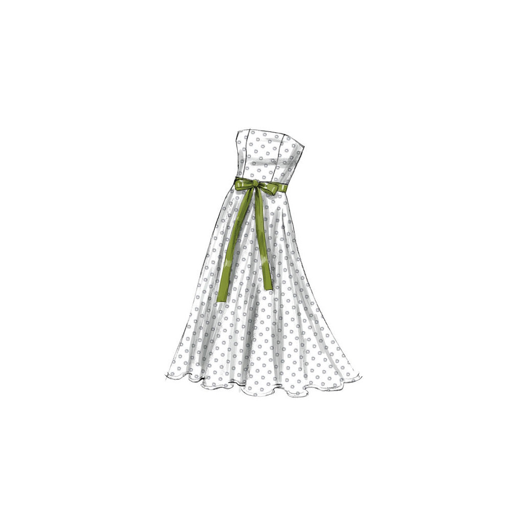 Střih Vogue na korzetové šaty s různými variantami ramínek, rukávů a sukní.