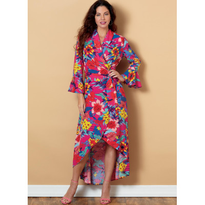 Střih Butterick na zavinovací šaty s variantami rukávů a záložkou do cípu