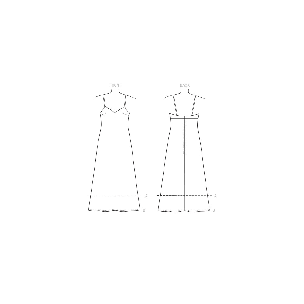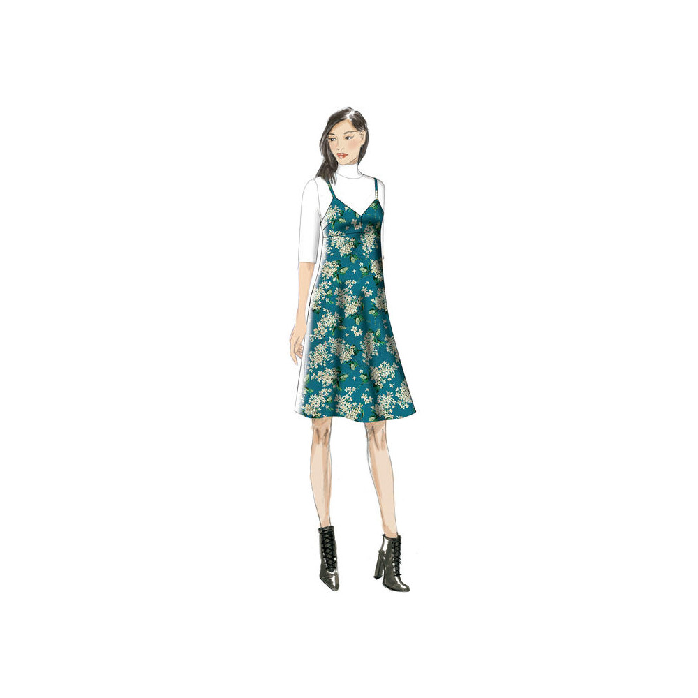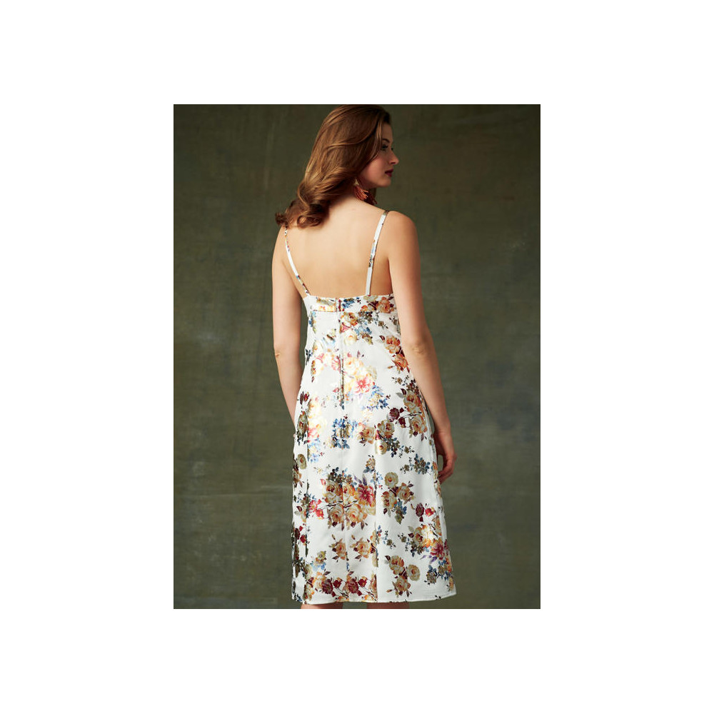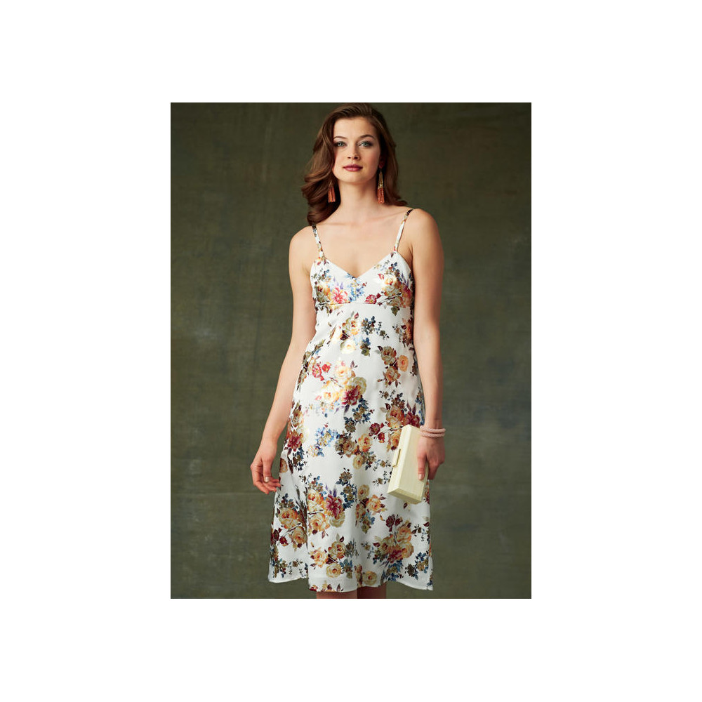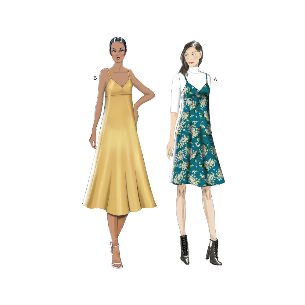Střih Vogue na empírové šaty (2 délky) se špagetovými ramínky a rozšířenou sukní