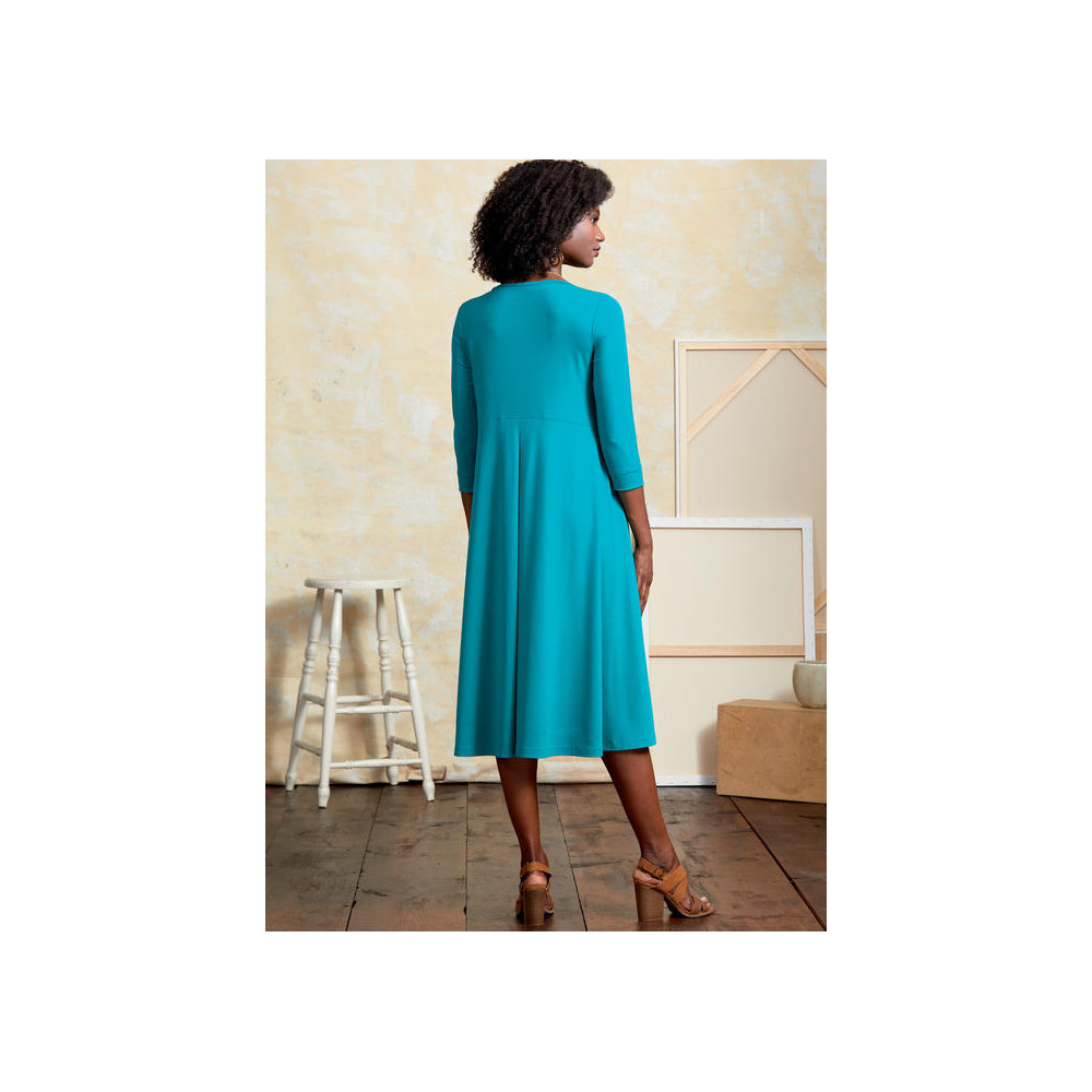 Střih Butterick na volné tričkové šaty s V-výstřihem a bočními (kontrastními) vsadkami