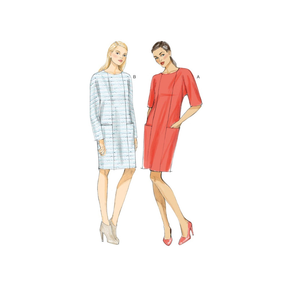 Střih Vogue na volné tričkové šaty s lodičkovým výstřihem a kapsami