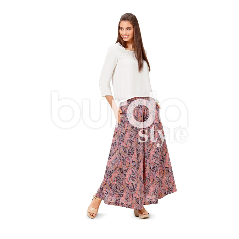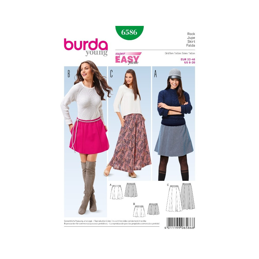 Jednoduchý střih Burda na áčkovou sukni ve třech délkách s kapsami a pasem do gumy