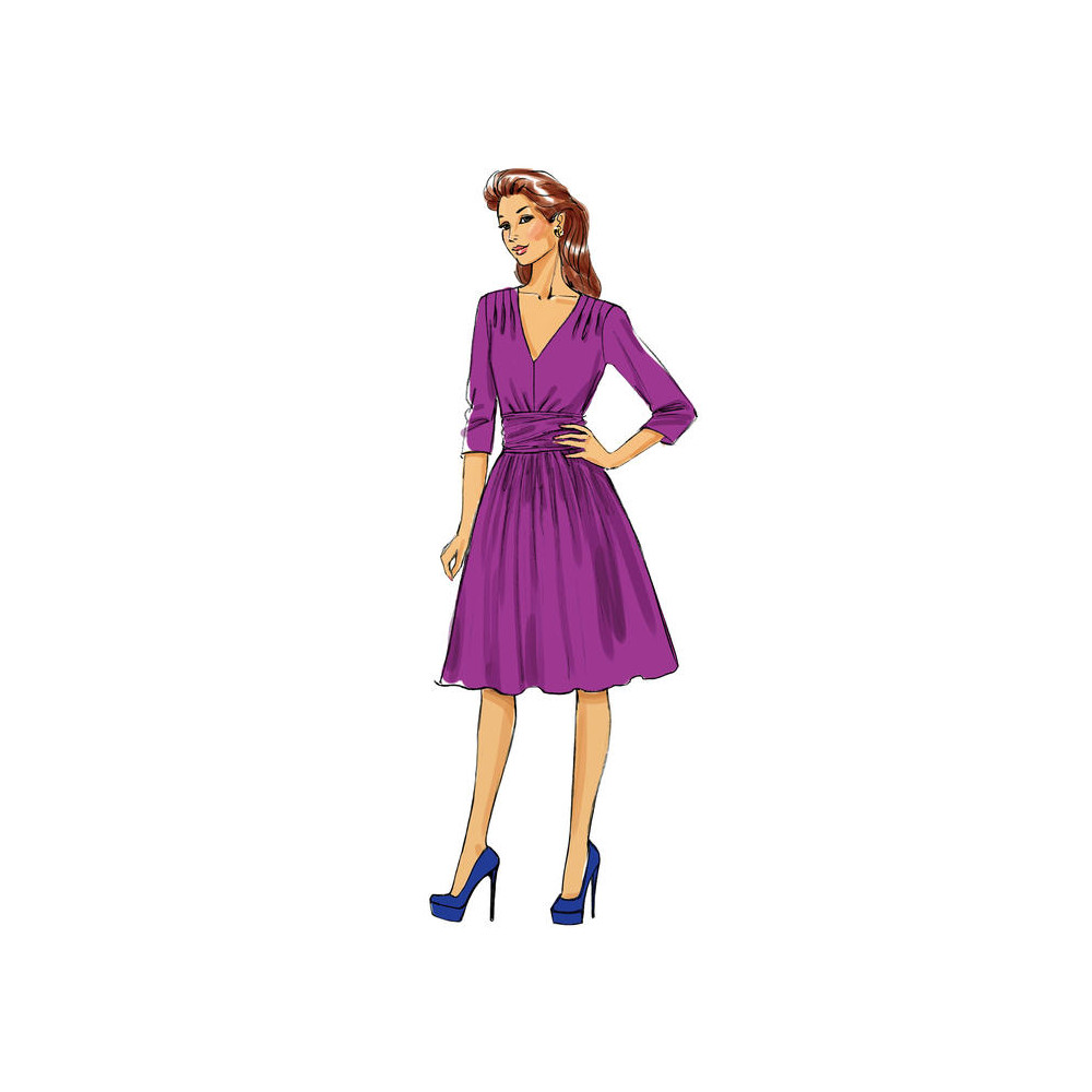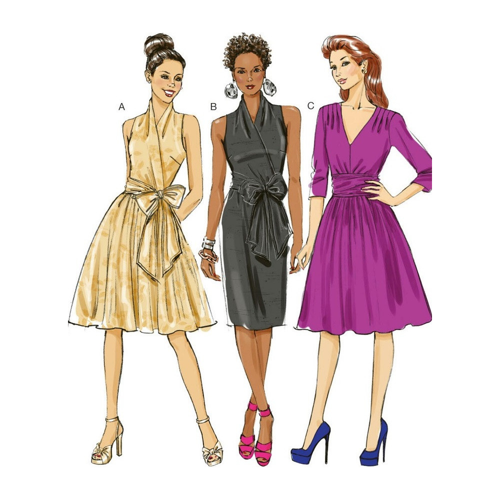 Střih Butterick na šaty se zavinováním, nabíranou sukní a zavazováním v pase