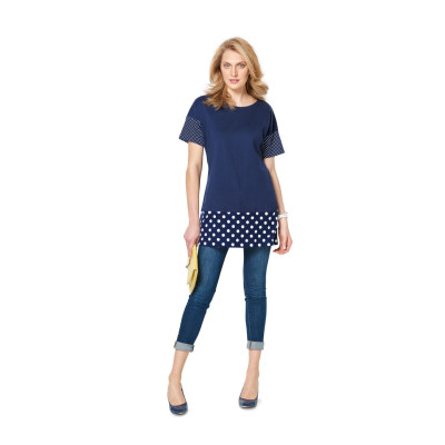 Střih Burda na delší tričko se širokými ozdobnými lemy a tričko s vázáním v pasem.
