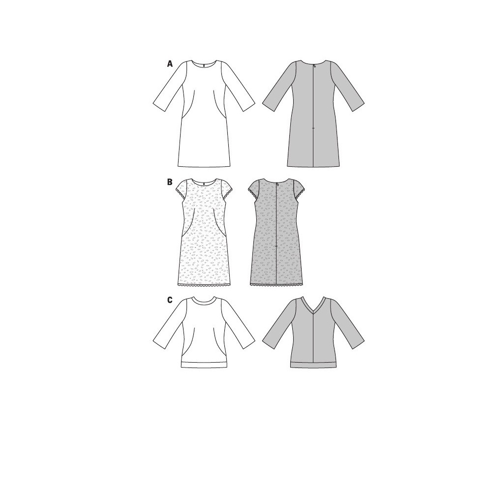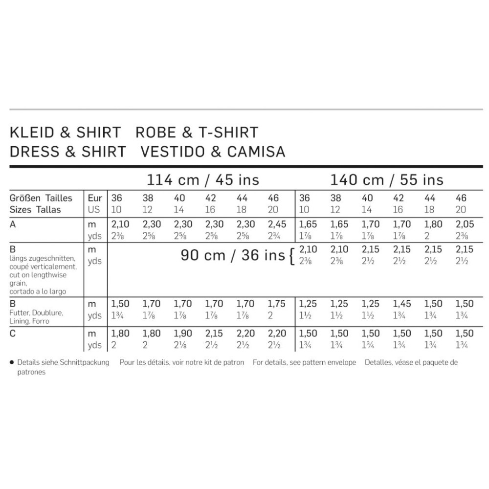 Více se dočtete v popisuStřih ve velikostech EUR 36-46, úroveň obtížnosti šití: 2 (lehká), doporučené látky: žerzej romanit, lehčí vlněné látky, krajka, satén (podšívka)