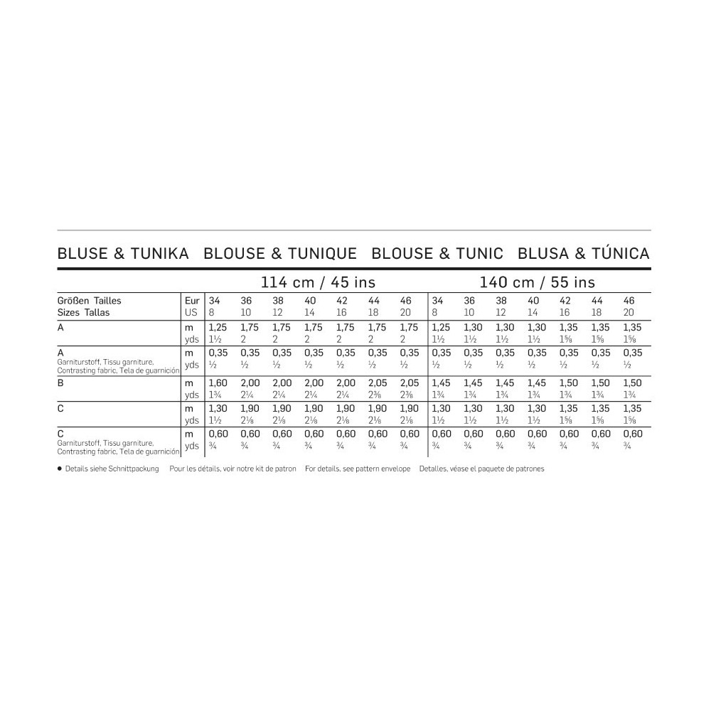 Vezměte prosím na vědomí, že střihy Burda style používají mezinárodní míry velikostí oblečení (EUR), které se mohou lišit od těch, které běžně nosíte. Pro určení správné velikosti střihu doporučujeme důkladné přeměření podle tabulky velikostí a měr Burda style. Vlastnoručně ušité oblečení by mělo nejen skvěle vypadat, ale především perfektně sedět!