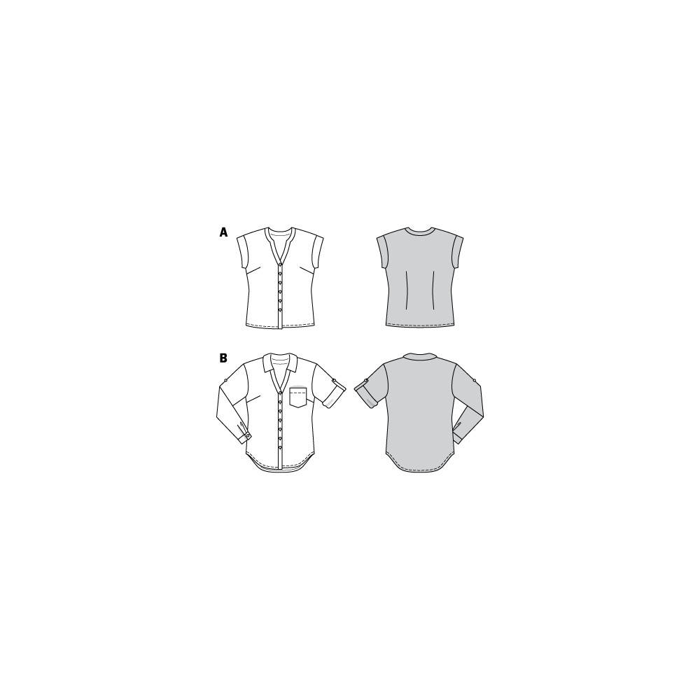 Střih Burda na propínací halenku / košili s dlouhým rukávem a výstřihem do V.