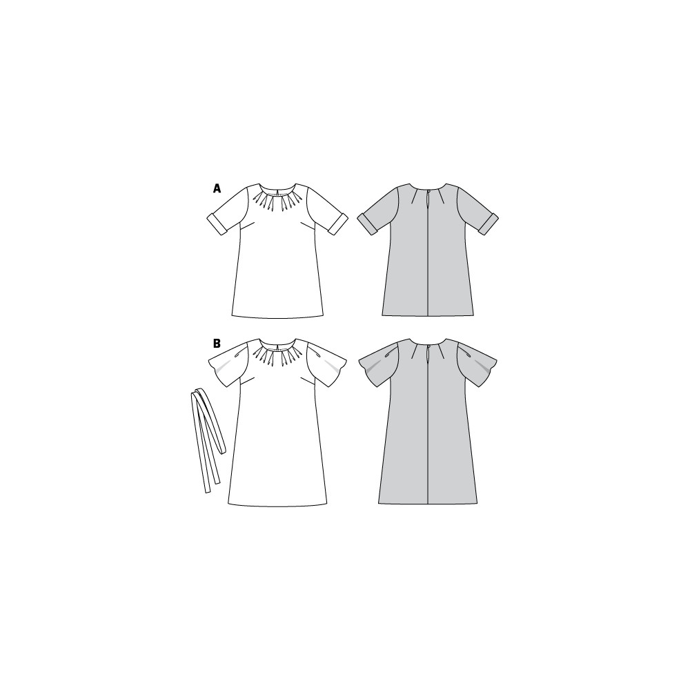 Střih Burda na jednoduché áčkové šaty a tuniku s krátkým rukávem a sklady v dekoltu.