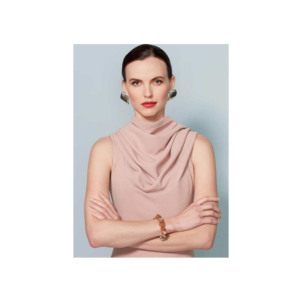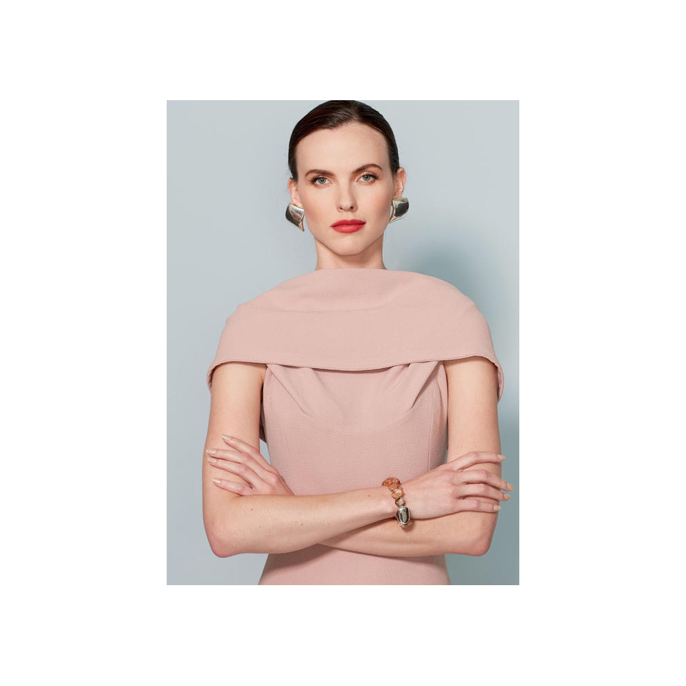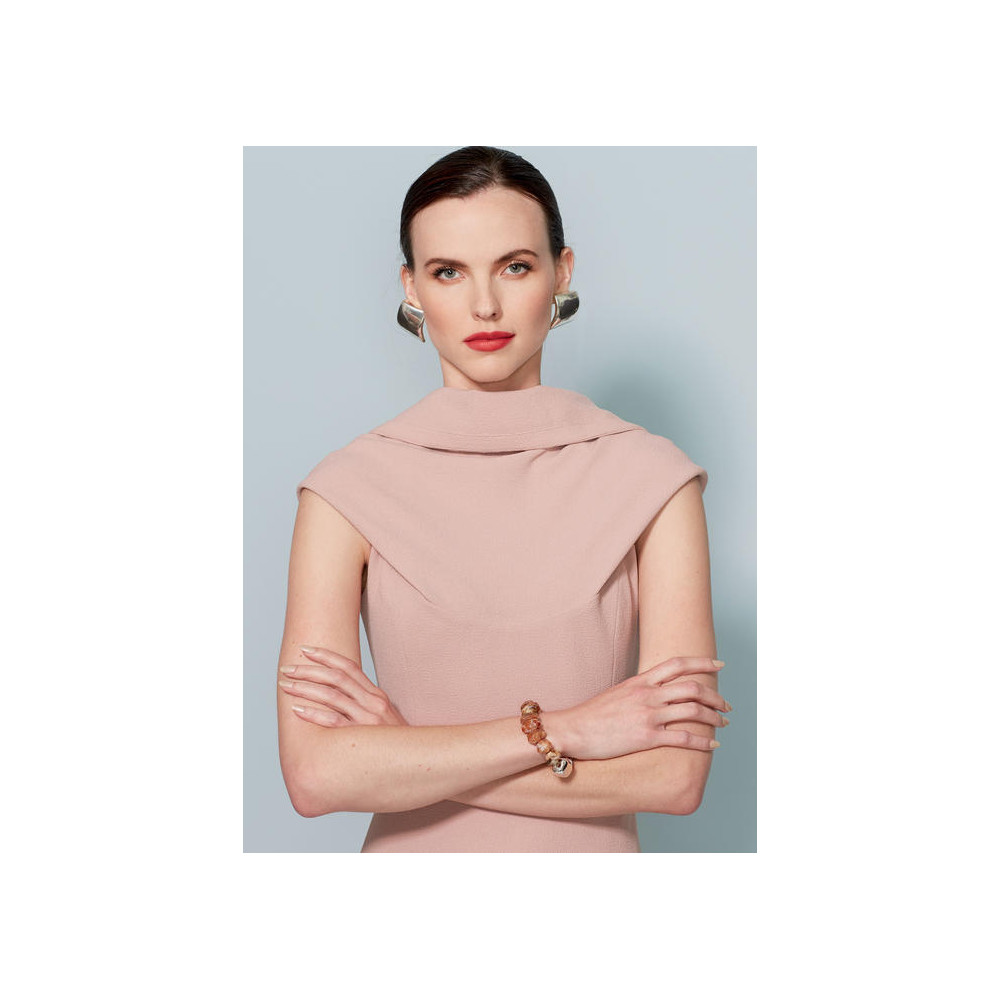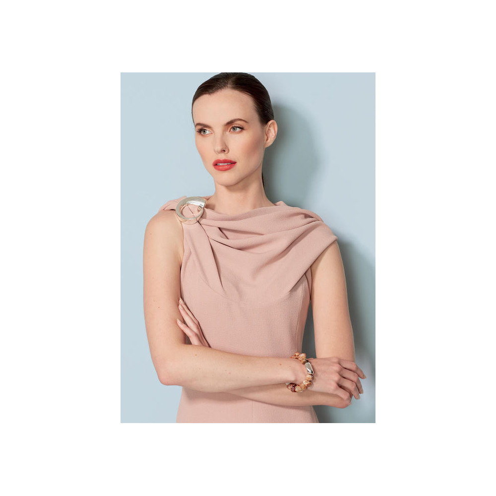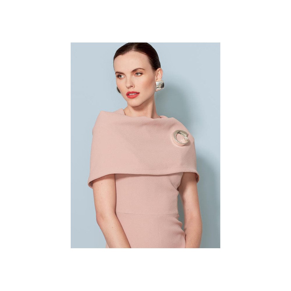 Návrhářský střih Vogue na pouzdrové šaty s výstřihem na zádech a variabilním límcem