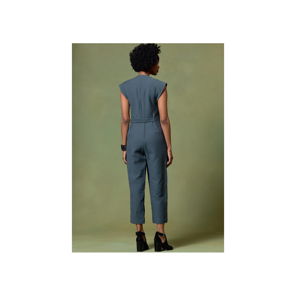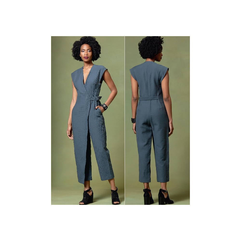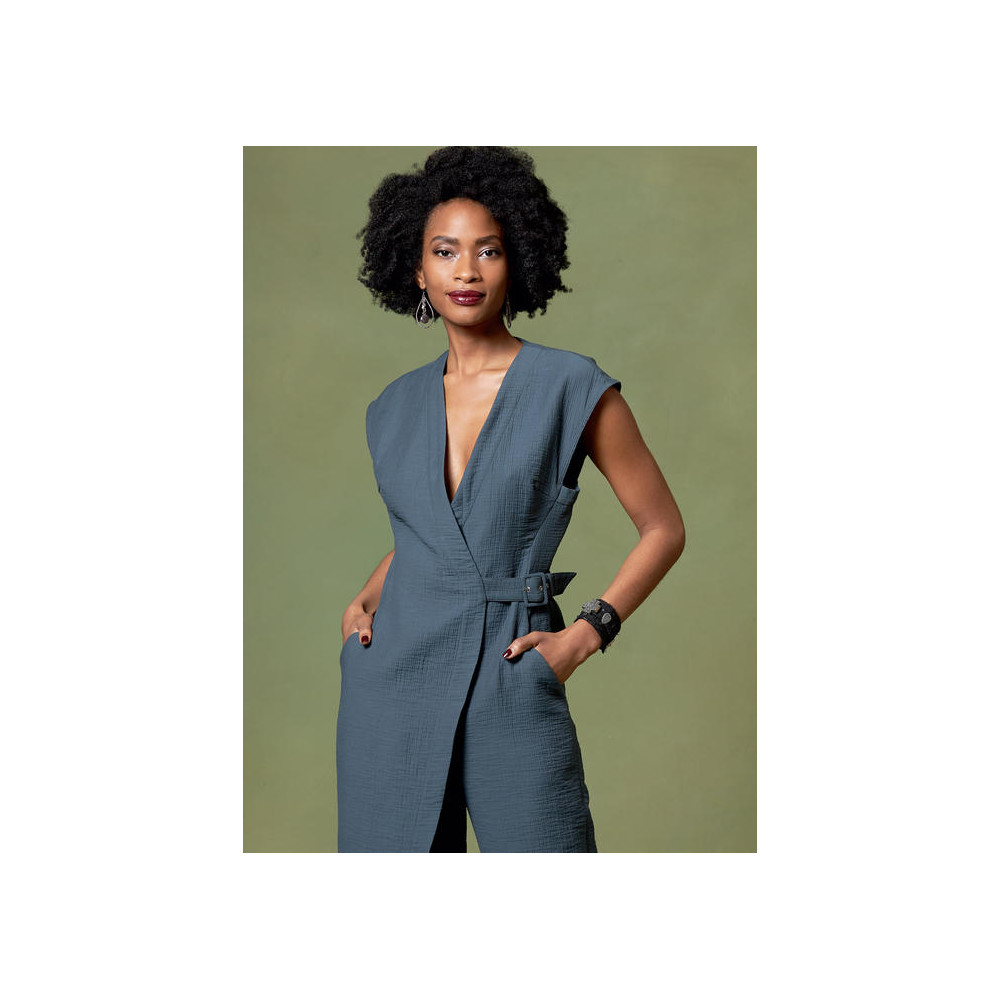 Návrhářský střih Vogue na overal se zavinovacím efektem a překryvem na nohavici