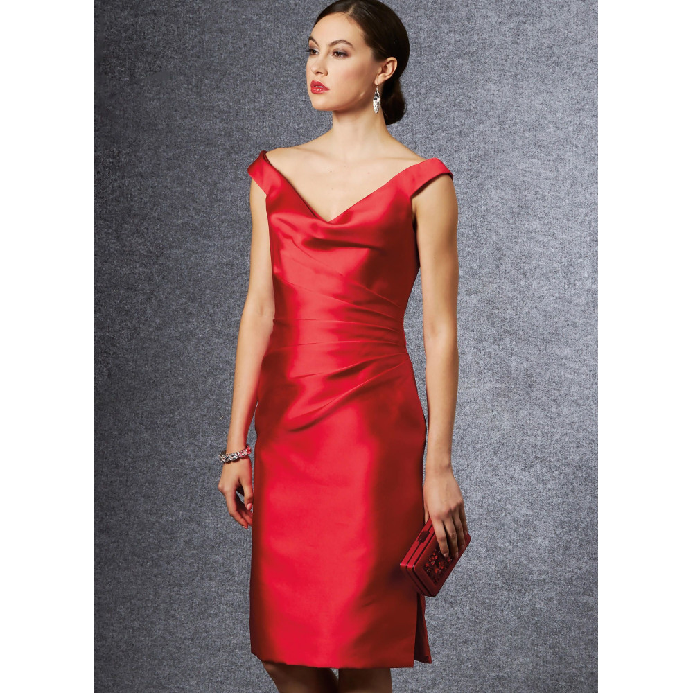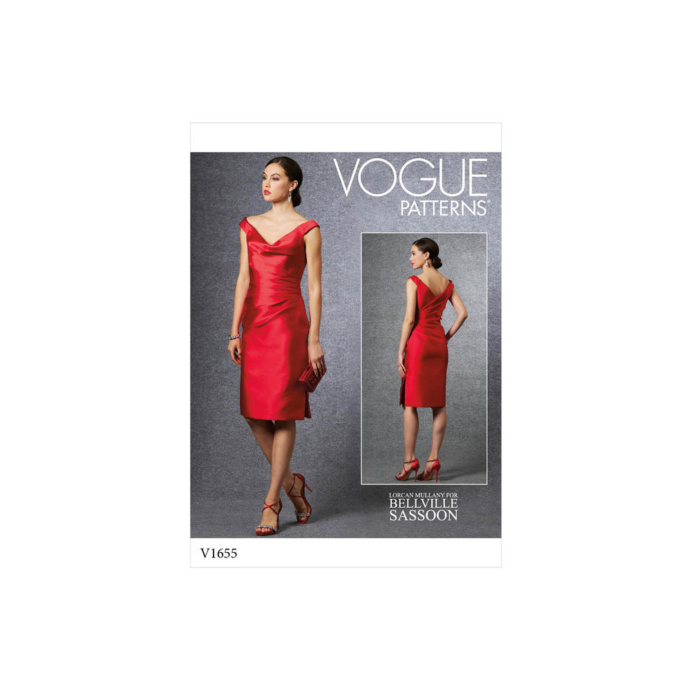 Návrhářský střih Vogue na šaty na ramínka s výstřihem voda, sklady a bočním rozparkem