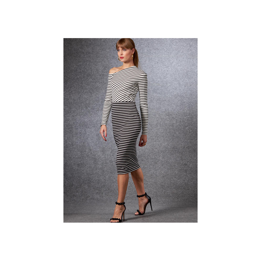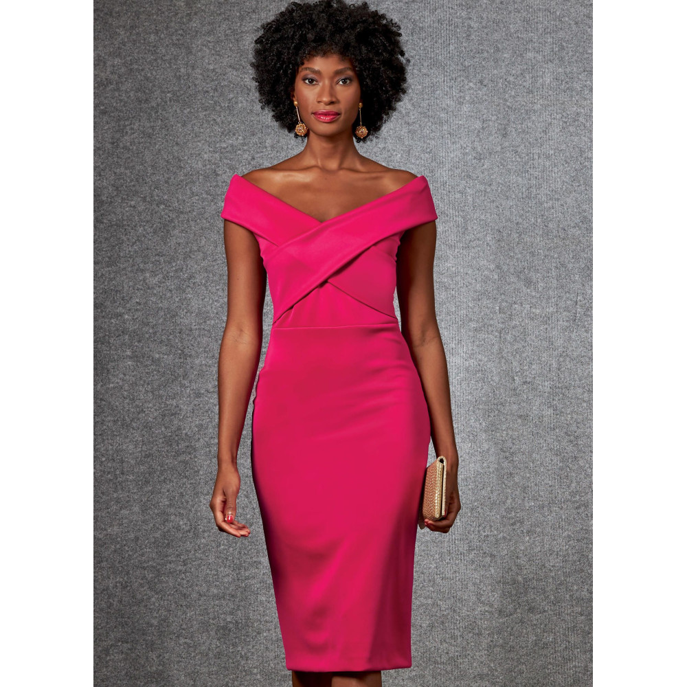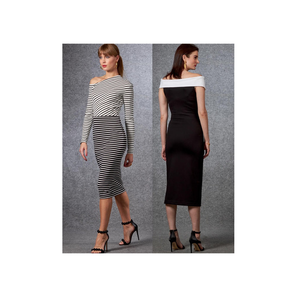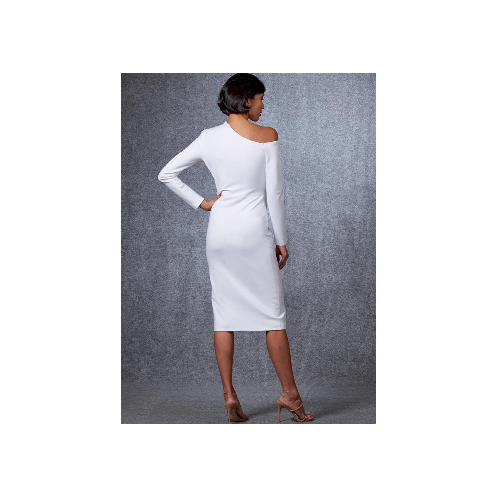 Střih Vogue na úzké šaty na ve variantách na jedno rameno nebo s nahými rameny