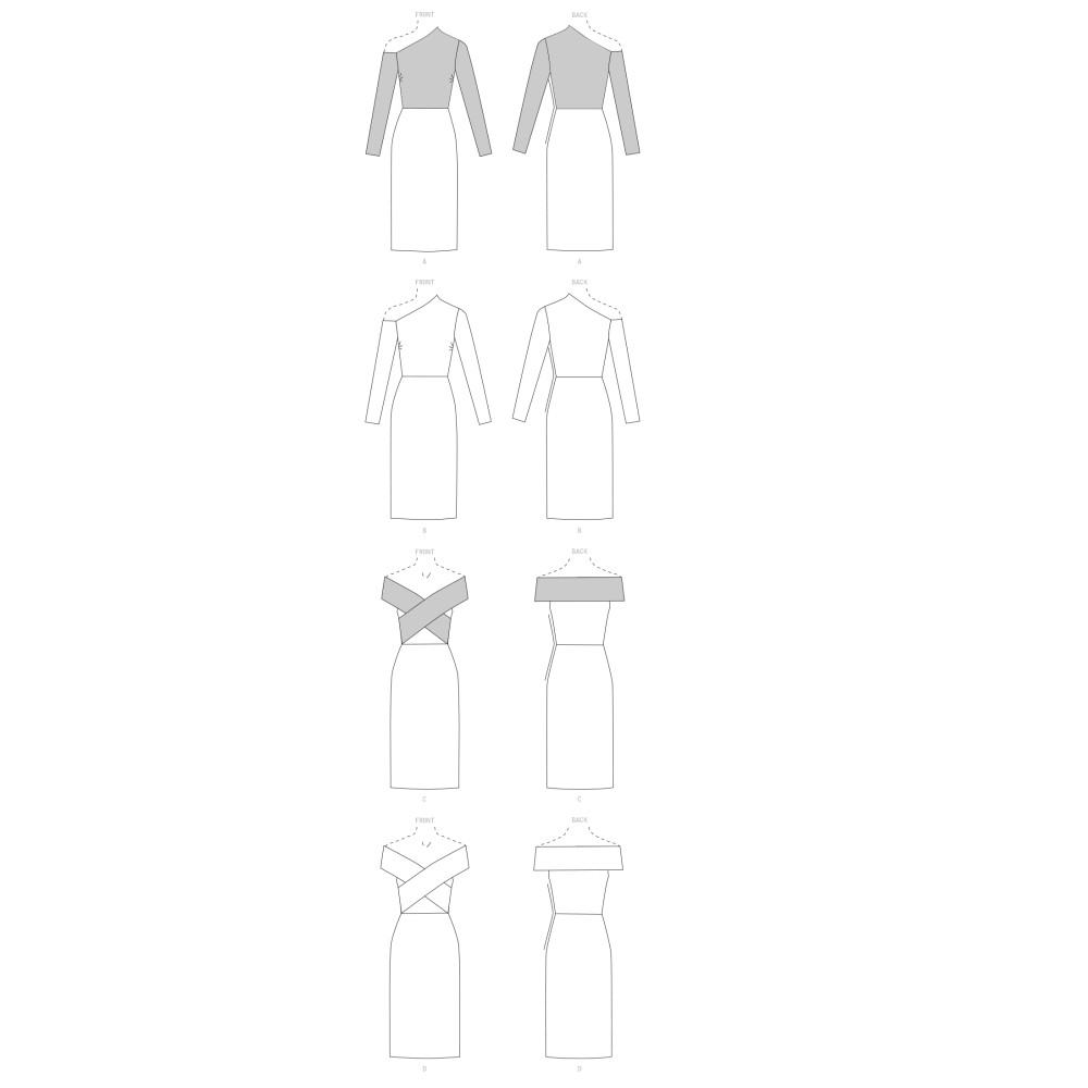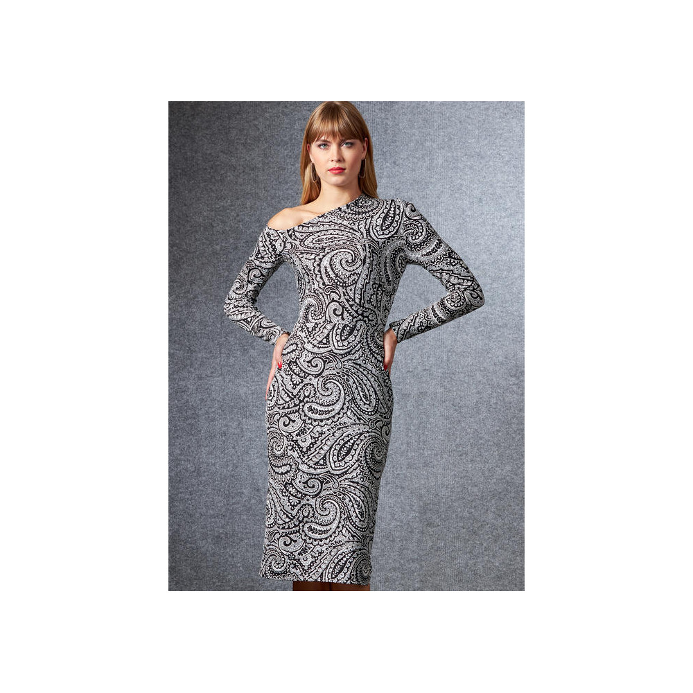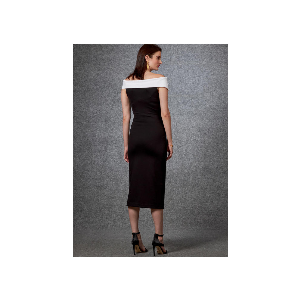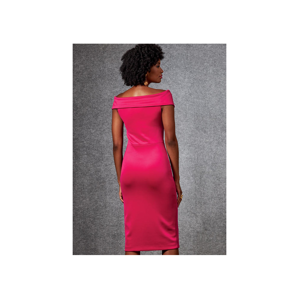 Střih Vogue na úzké šaty na ve variantách na jedno rameno nebo s nahými rameny