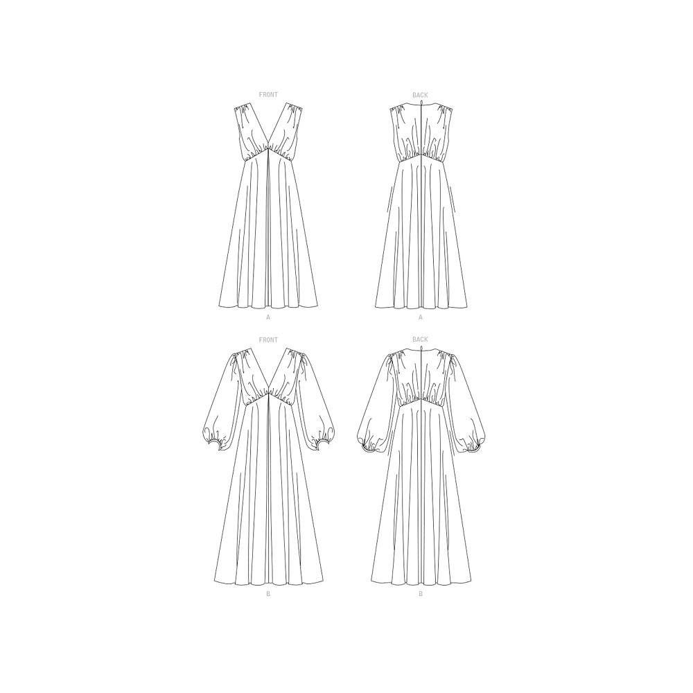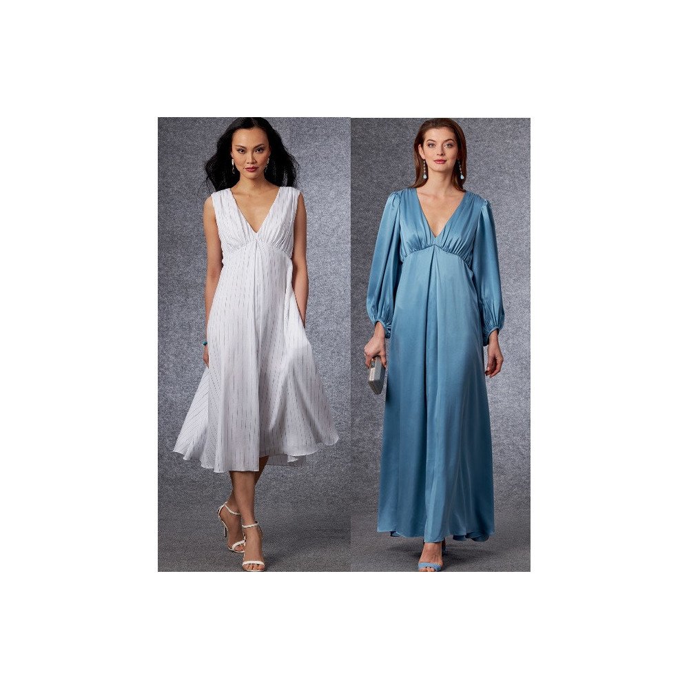 Střih Butterick na empírové šaty ve dvou délkách s V-výstřihem (3 varianty)