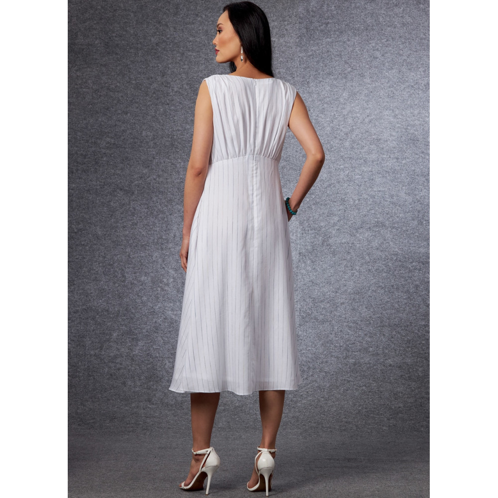 Střih Vogue na volné empírové šaty s V-výstřihem a variantami rukávů