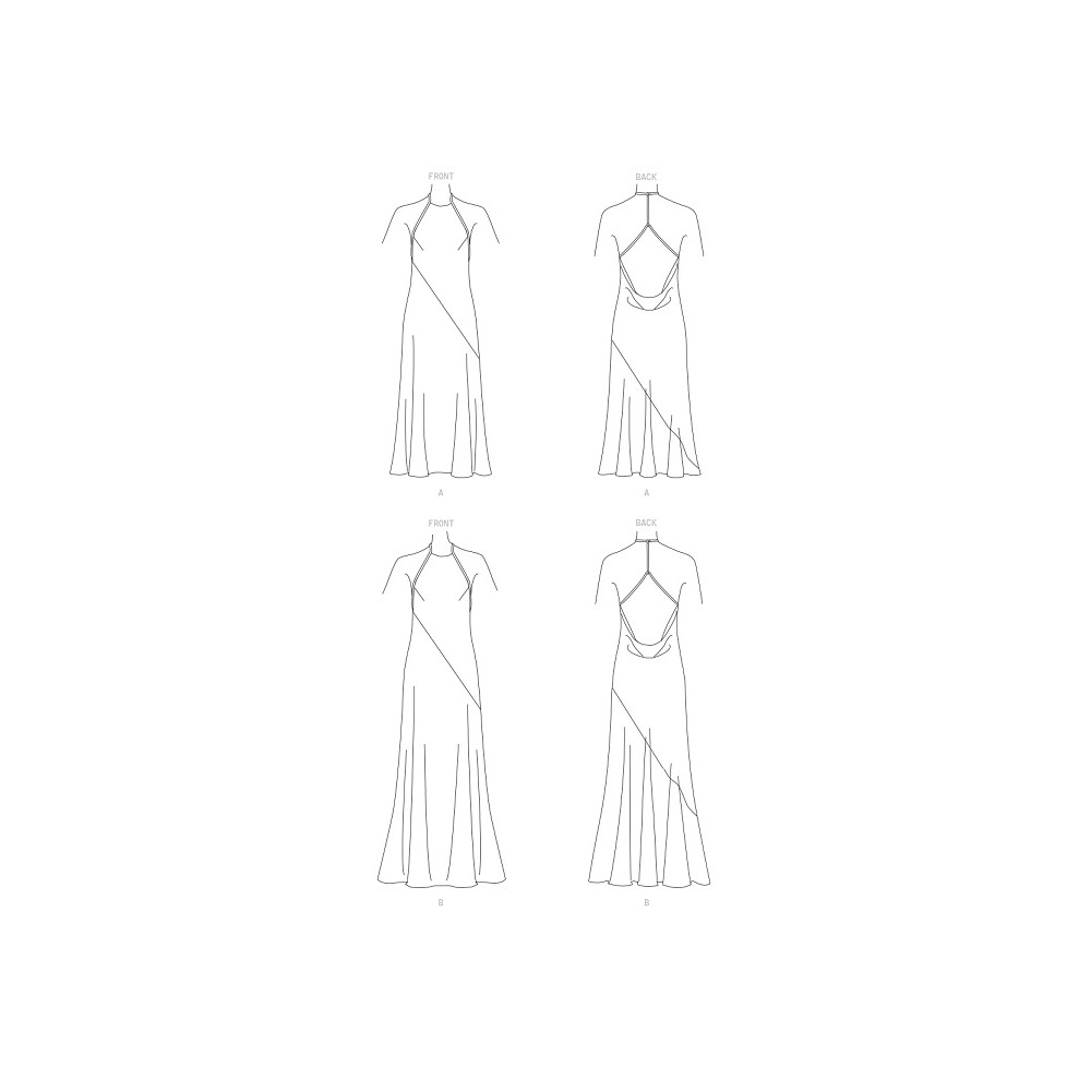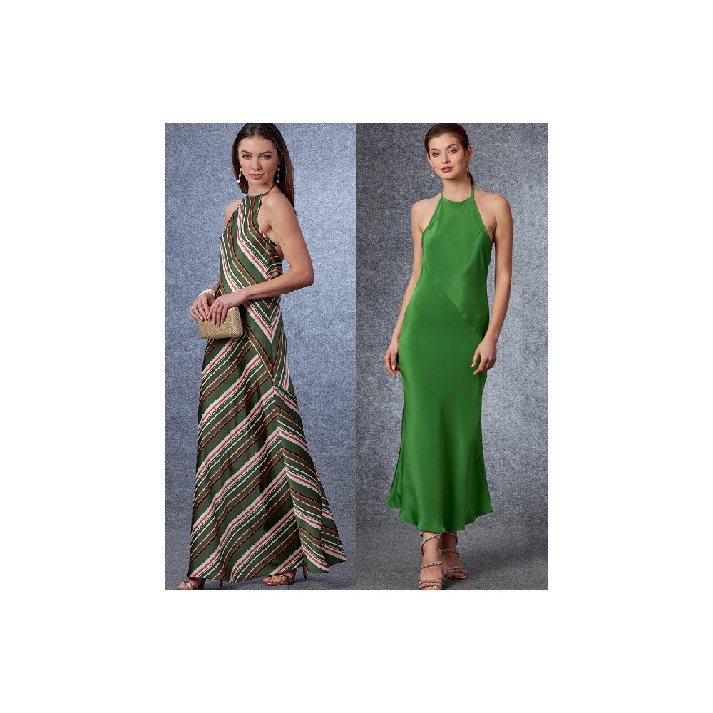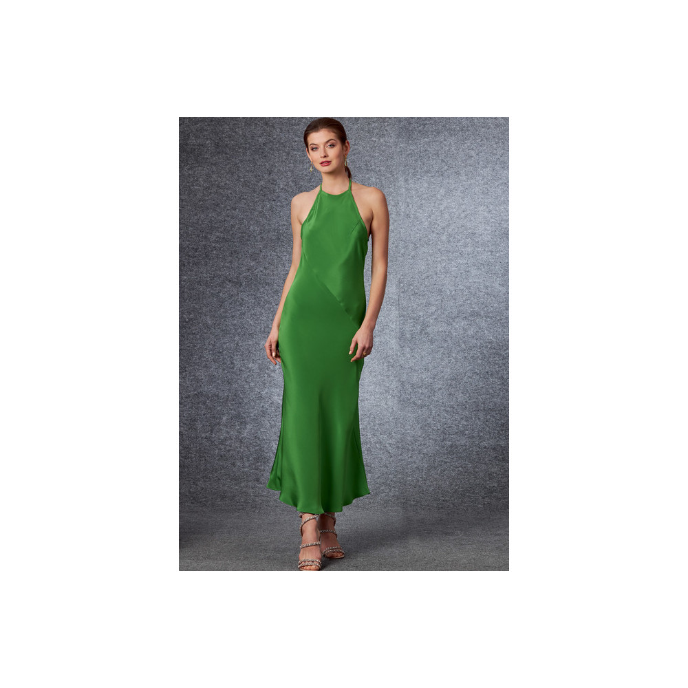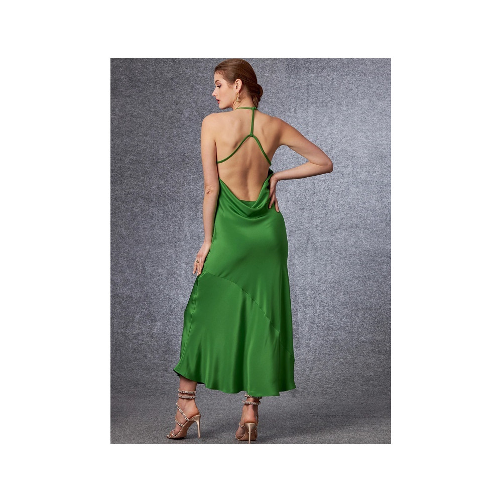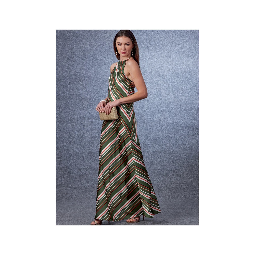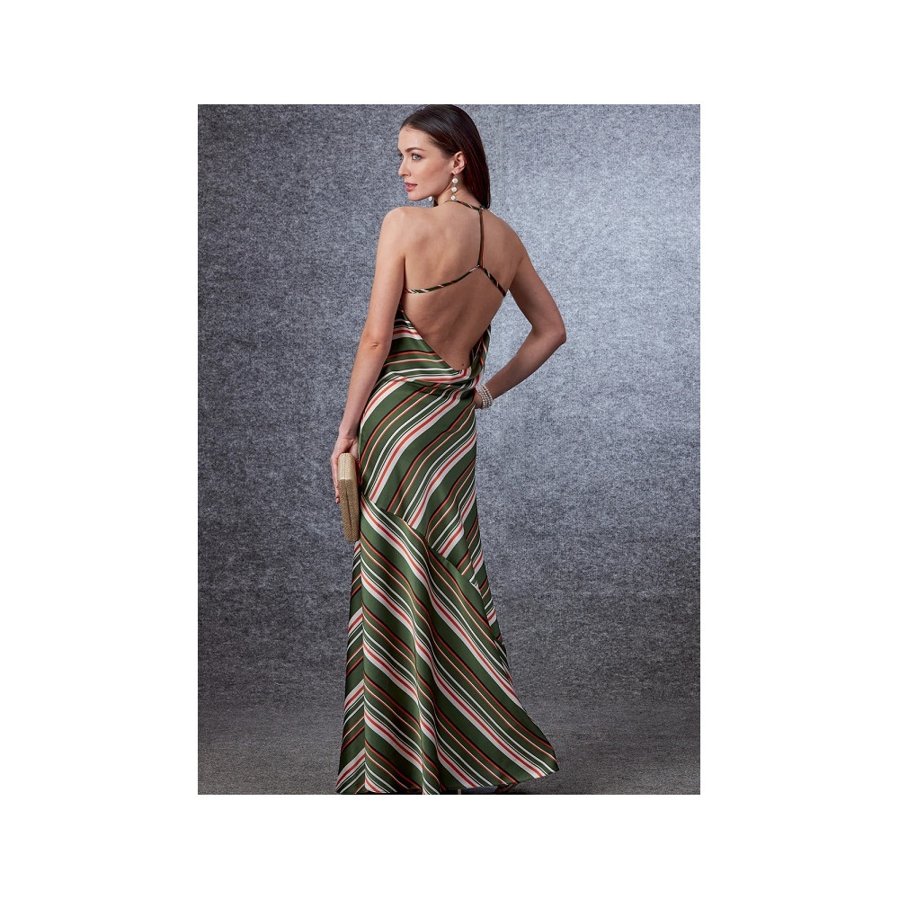 Střih Vogue na dlouhé šaty na ramínka za krk a nahými zády