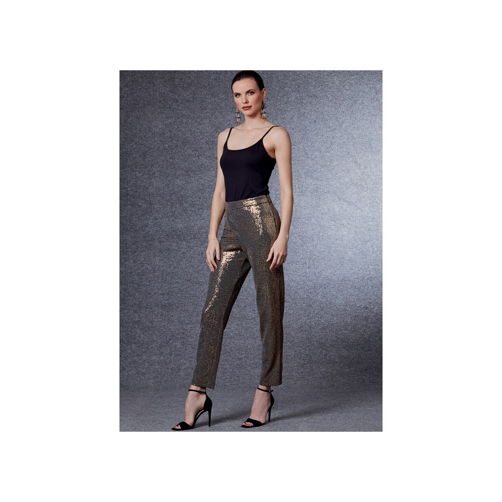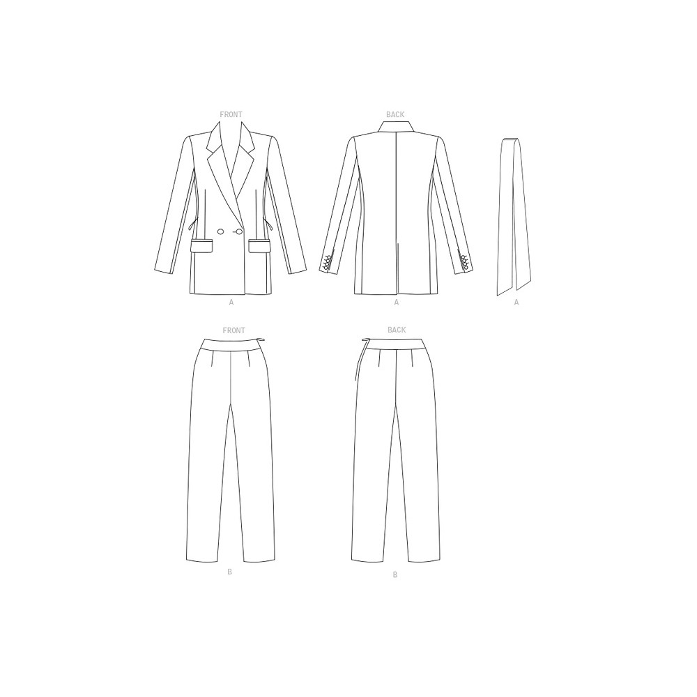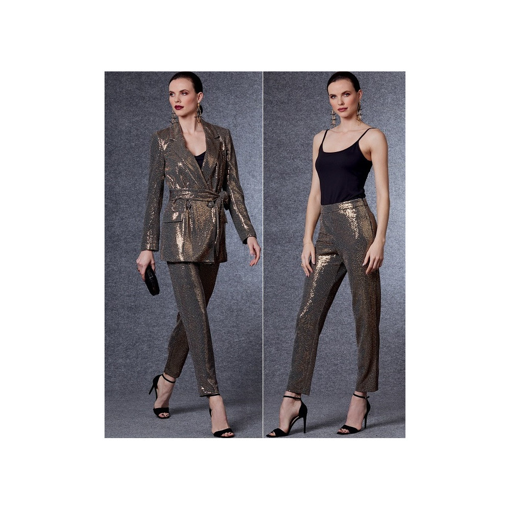 Návrhářský střih Vogue na kalhotový kostýmek s dvouřadým sakem s páskem