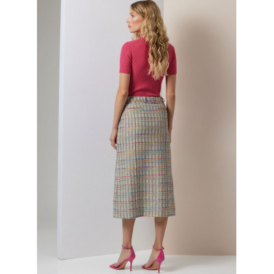 Střih Vogue na rovnou sukni v délce pod kolena nebo na zem s vysokým předním rozparkem