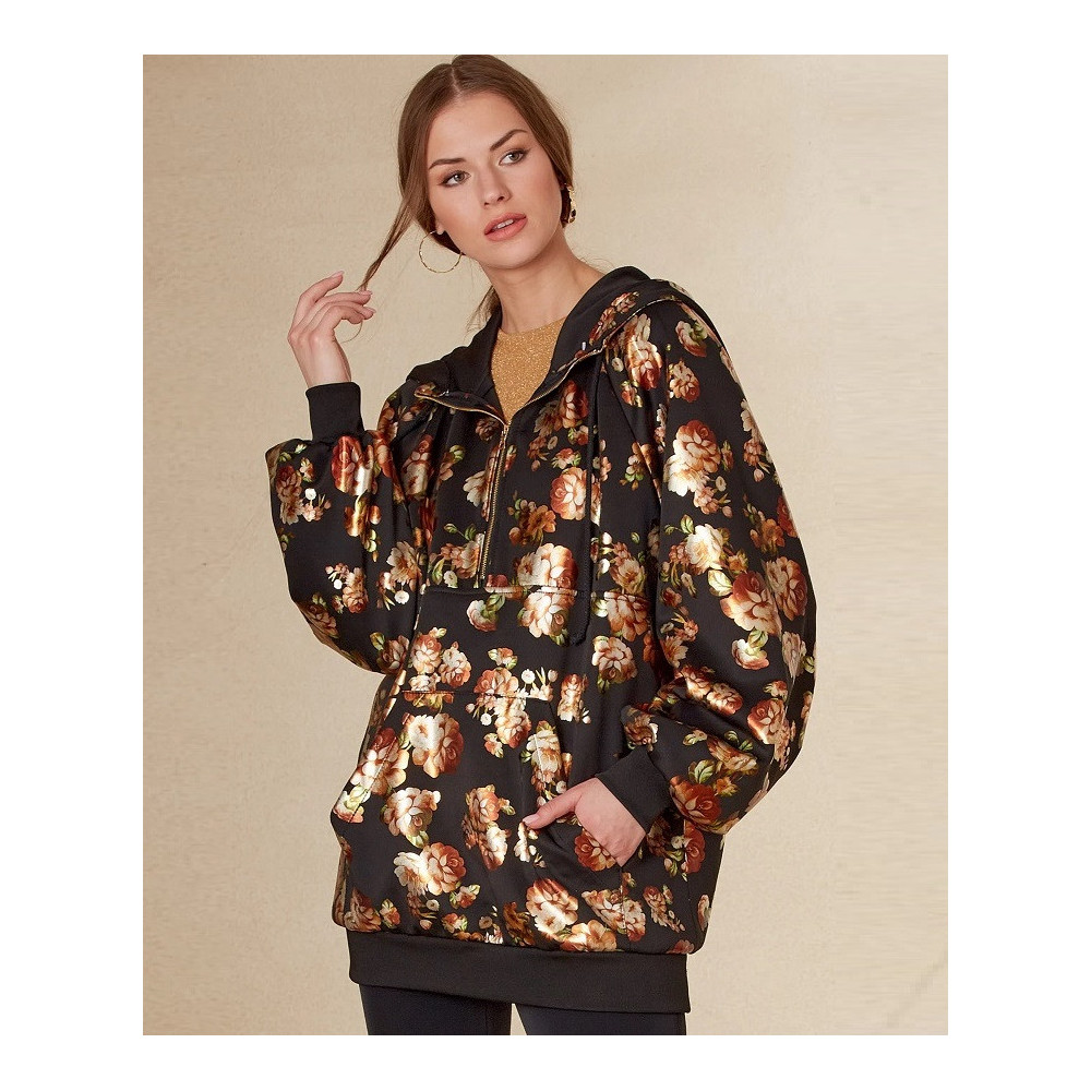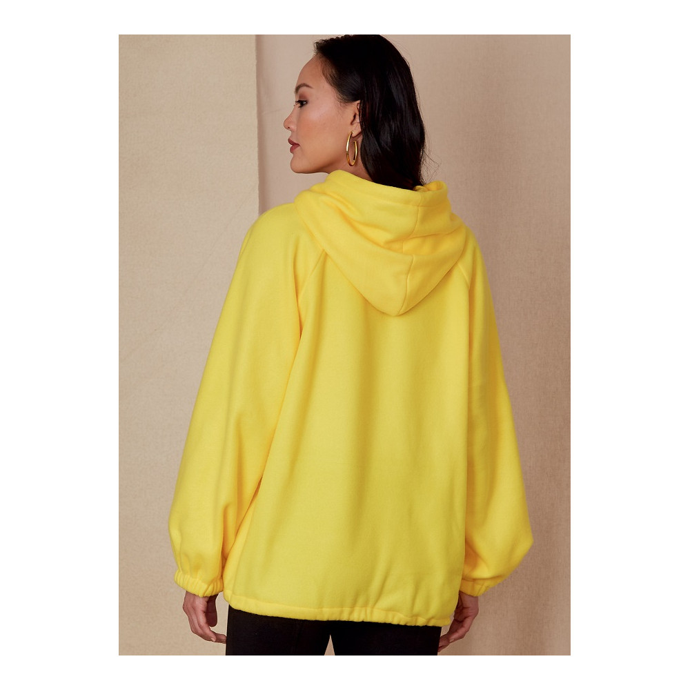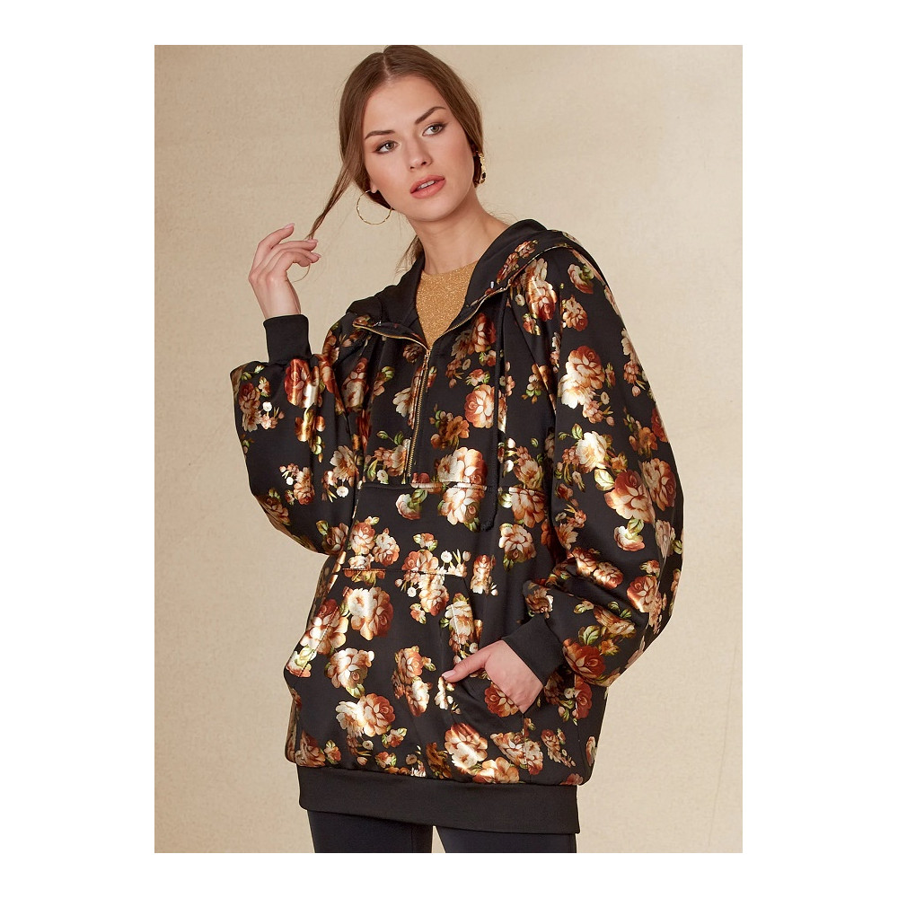 Střih Butterick na volnou mikinu se zapínáním na zip s kapucí a předními kapsami
