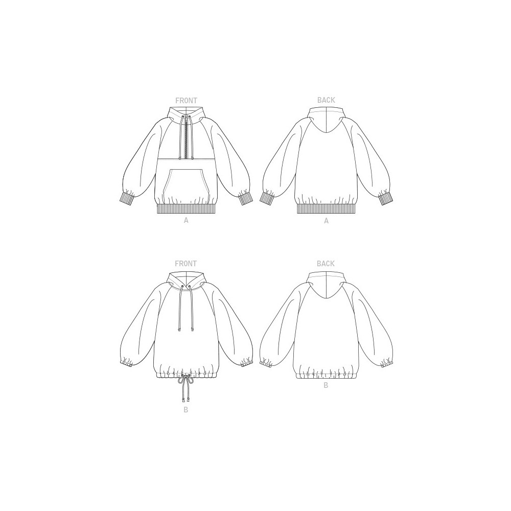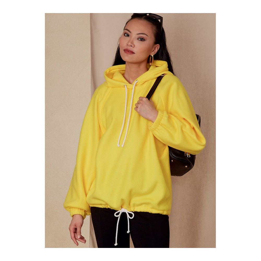 Střih Vogue na oversized mikinu s kapucí, raglánovými rukávy a s náplety nebo se stahováními na šňůrku