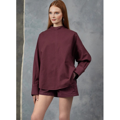 Návrhářský střih Vogue na volný top s dlouhým rukávem a šortky s velkými kapsami