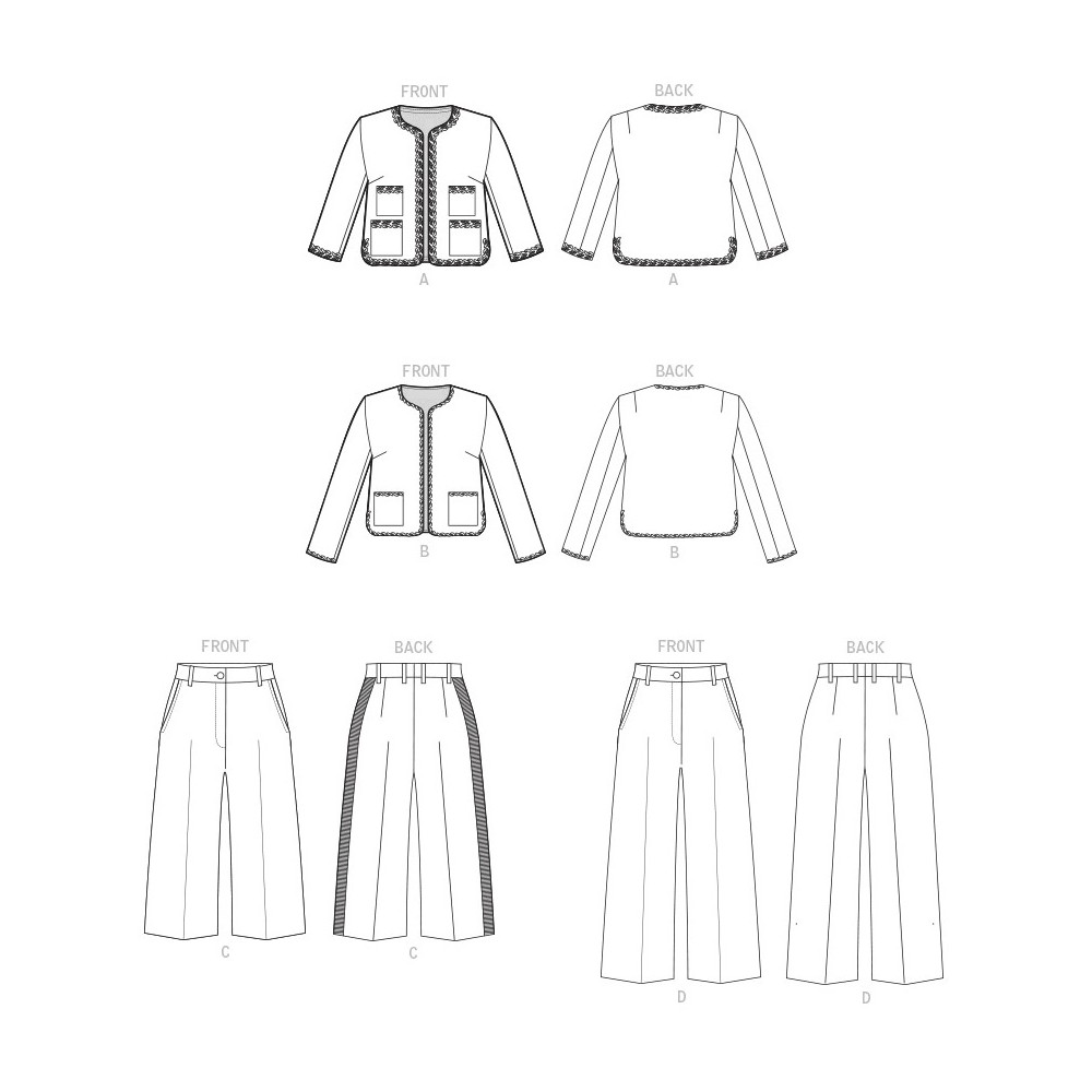 Střih Butterick na komplet - sako bez límce, pouzdrové šaty, sukně a rovné kalhoty