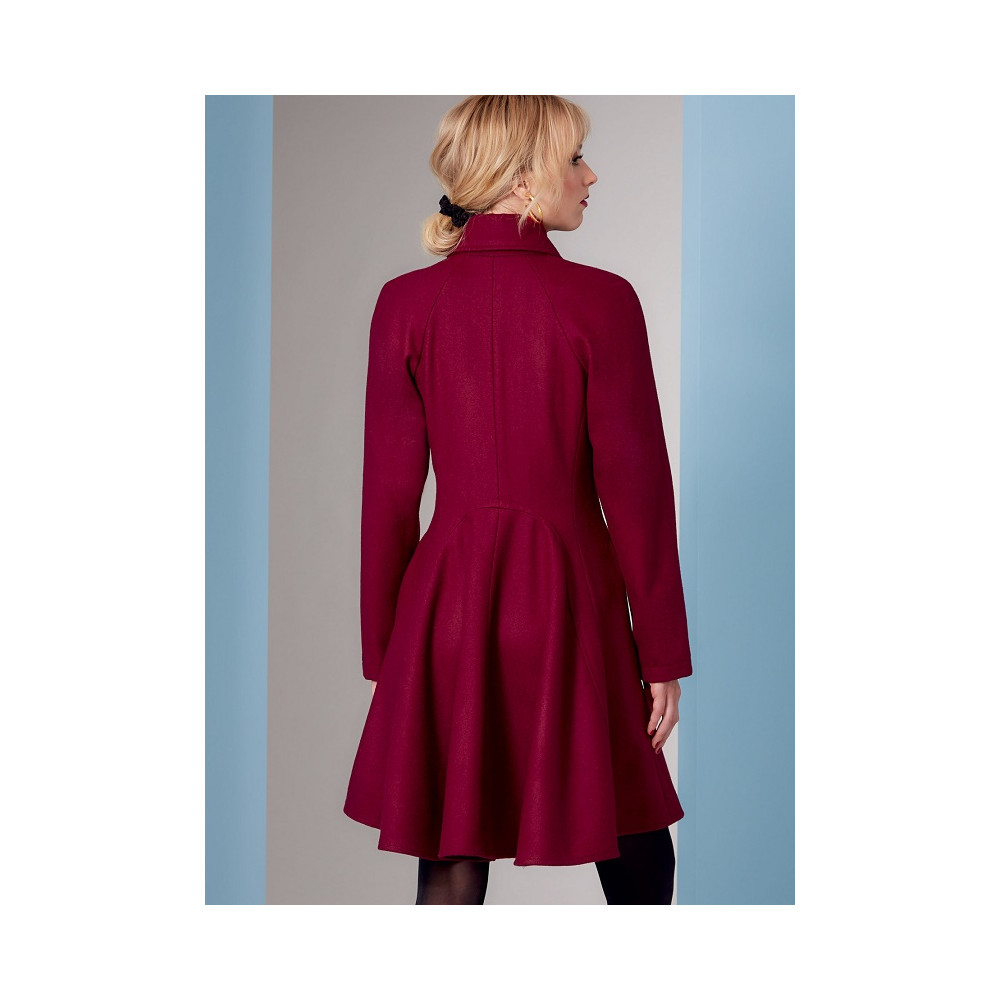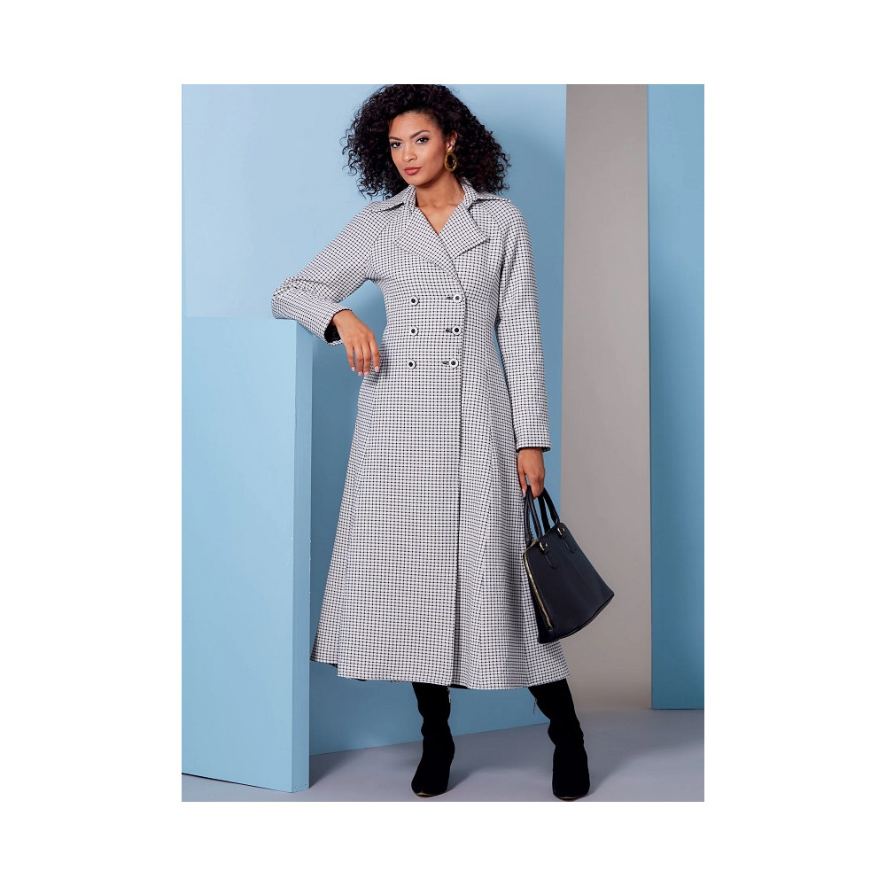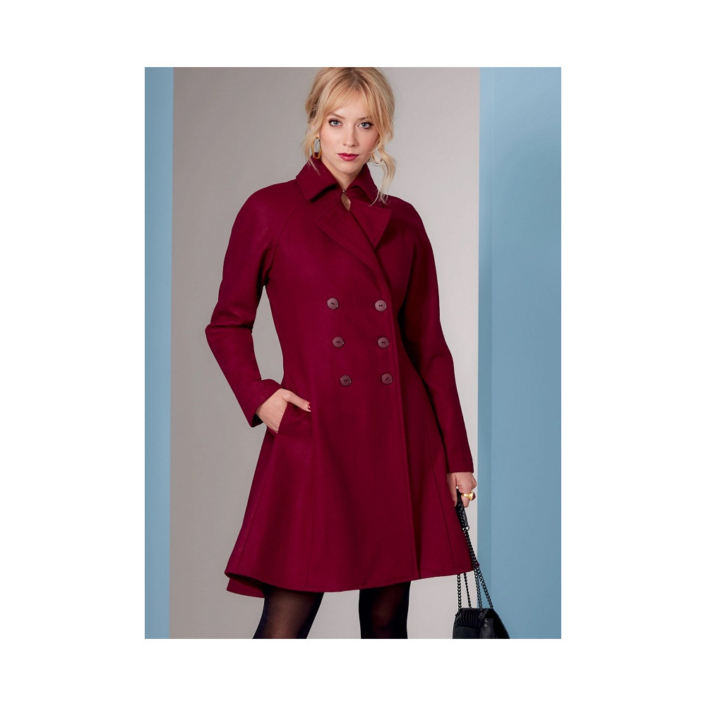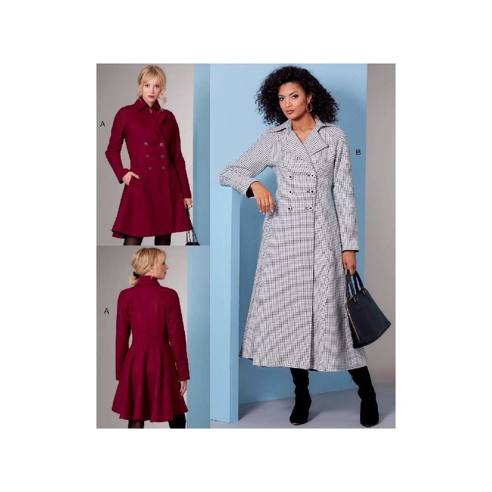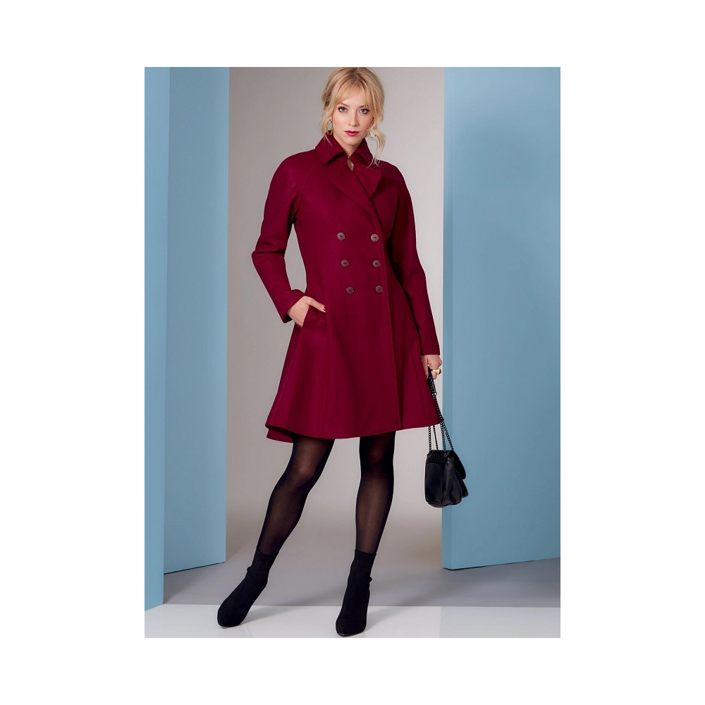 Střih Vogue na dvouřadý kabát ve dvou délkách se širokou sukní, raglánovými rukávy a princesovými švy