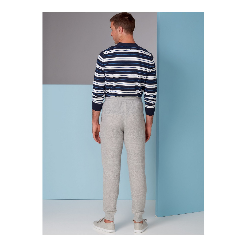 Střih Vogue na pánské kalhoty v jogger stylu s náplety, gumou a stahovací šňůrkou v pase a kapsami