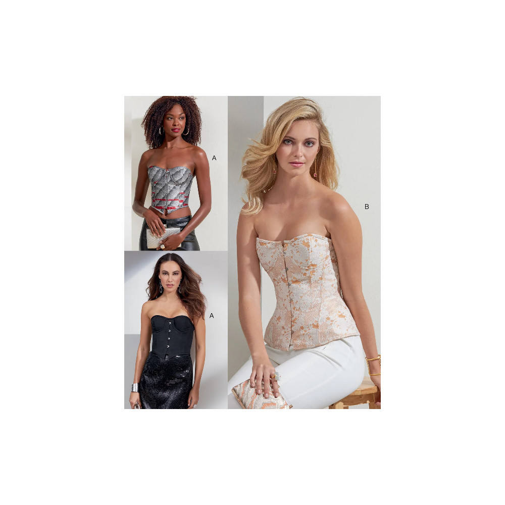 Střih Vogue na přiléhavý korzet s kosticemi, korzetovým zapínáním vpředu a šněrováním na zádech